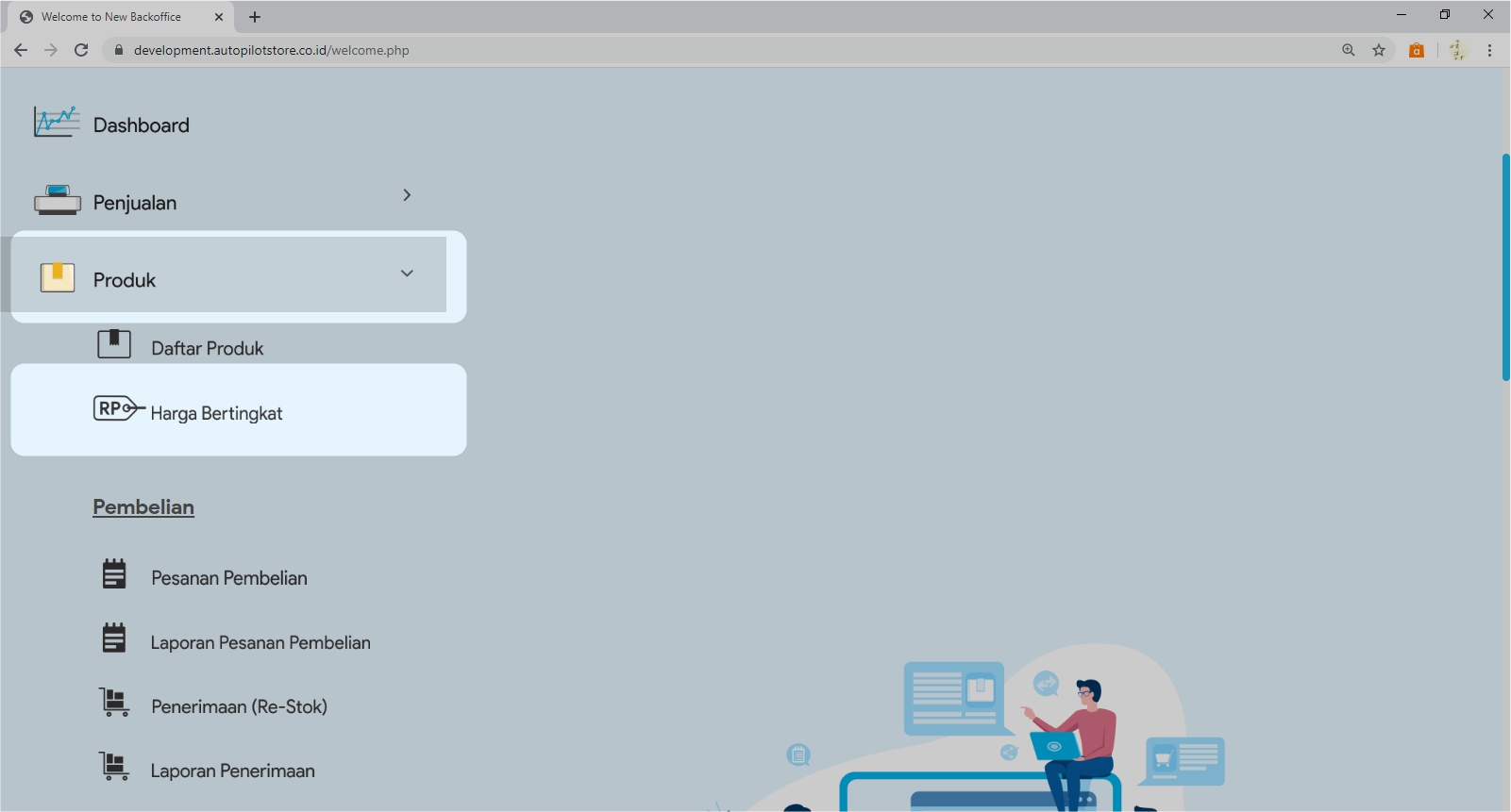 3. Masukkan Nama Produk, varian atau kode barcode produk yang ingin diubah harga bertingkat nya pada kolom pencarian