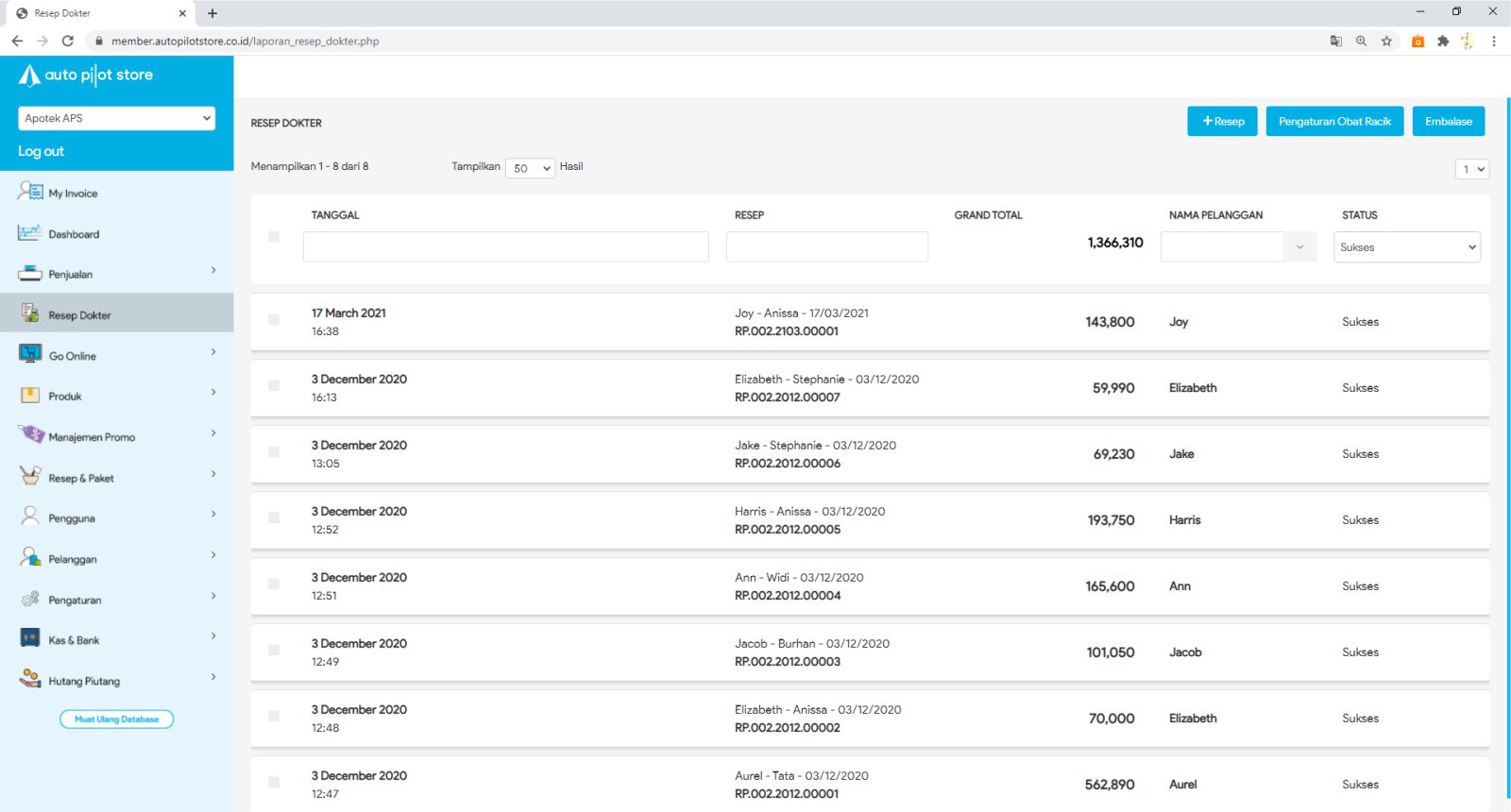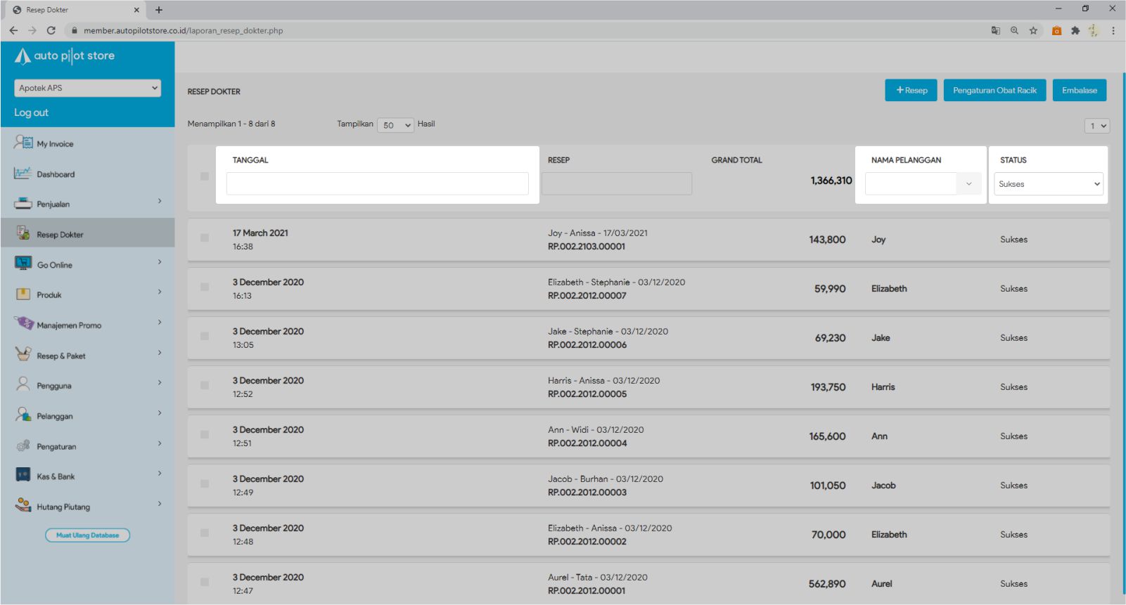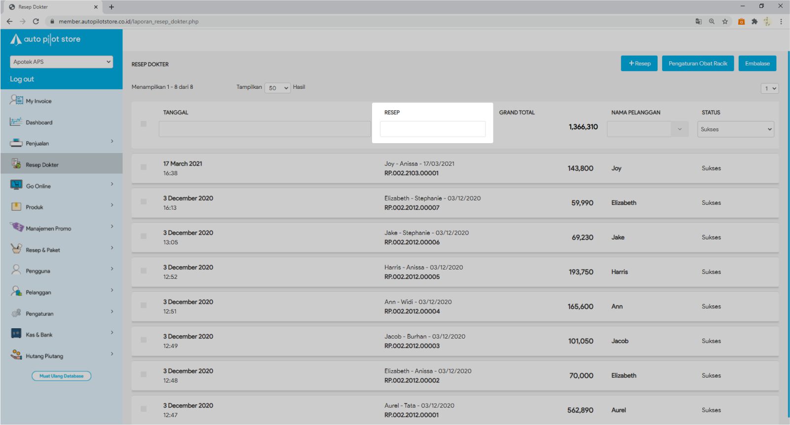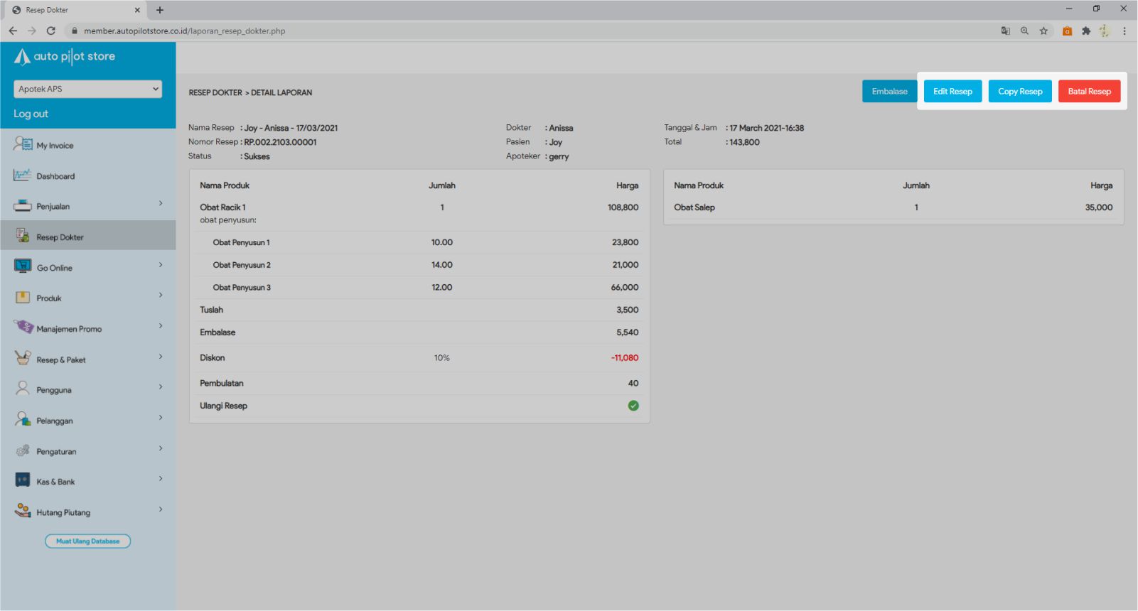 6. Untuk meng copy resep, mengedit resep ataupun membatalkan resep, klik tombol sesuai fungsi yang ingin Anda lakukan