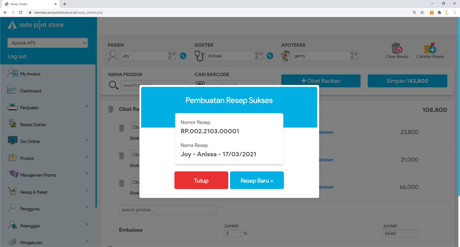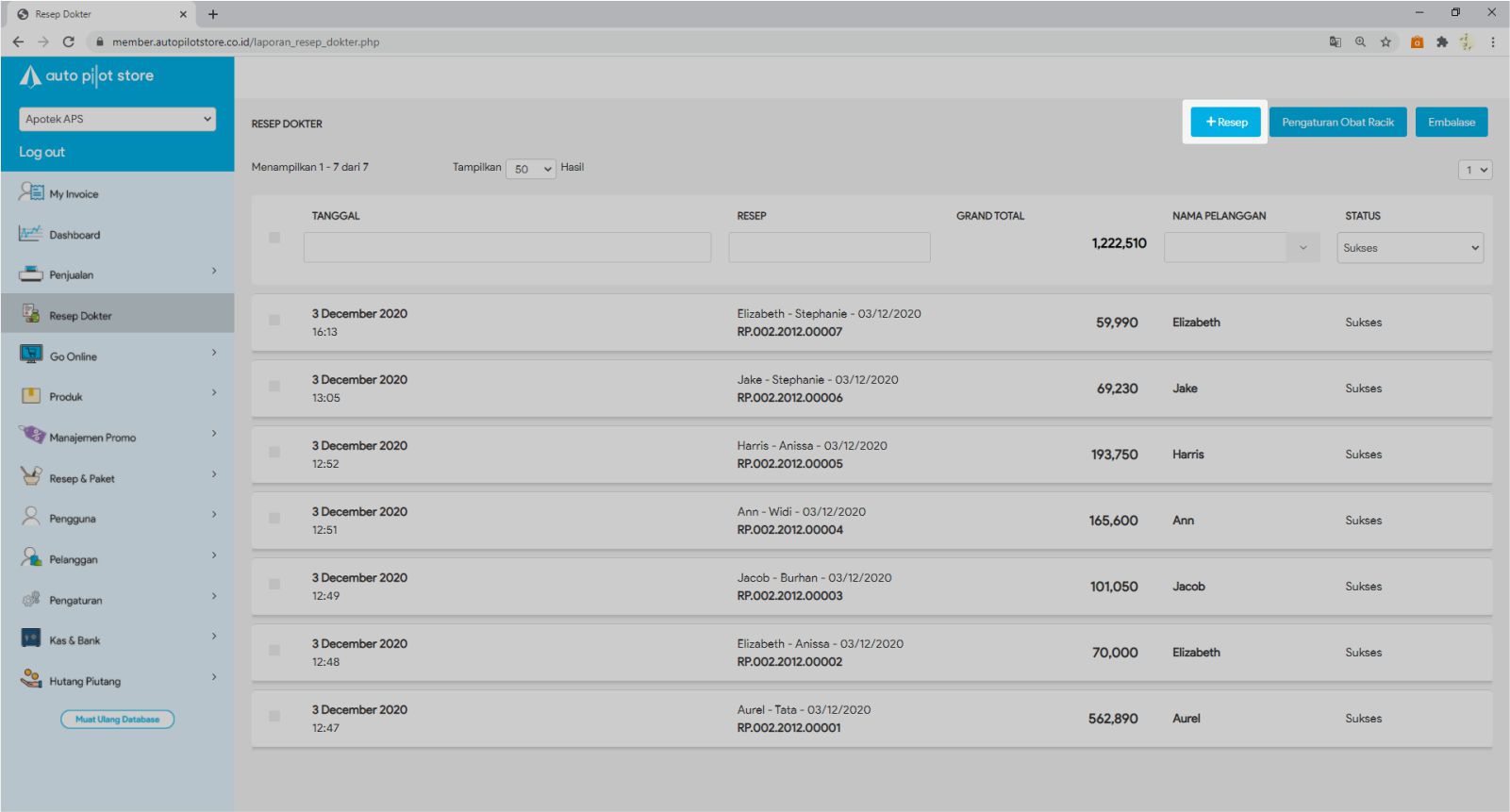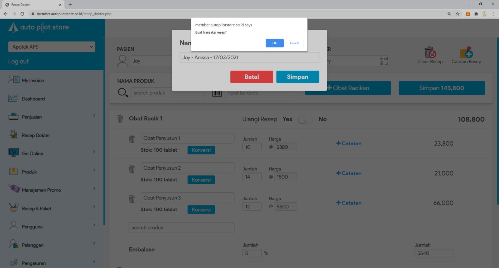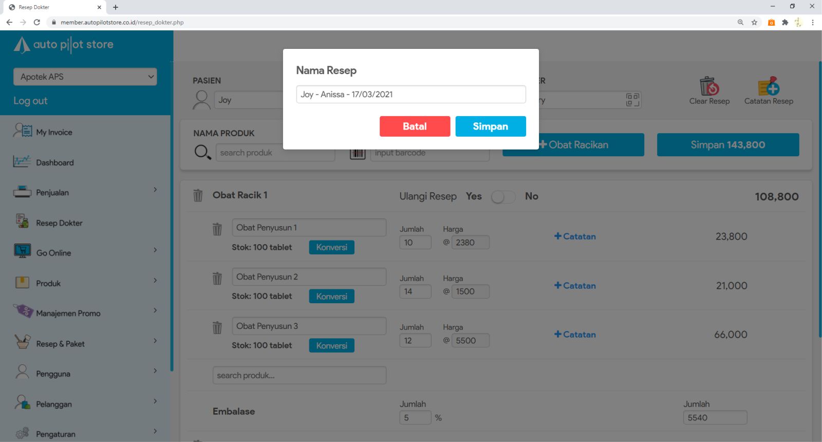 Fasilitas resep dokter digunakan oleh apoteker atau pengguna yang berwenang, untuk mengatur komposisi dari resep obat yang diberikan oleh dokter. Berikut tahapan membuat resep dokter:
