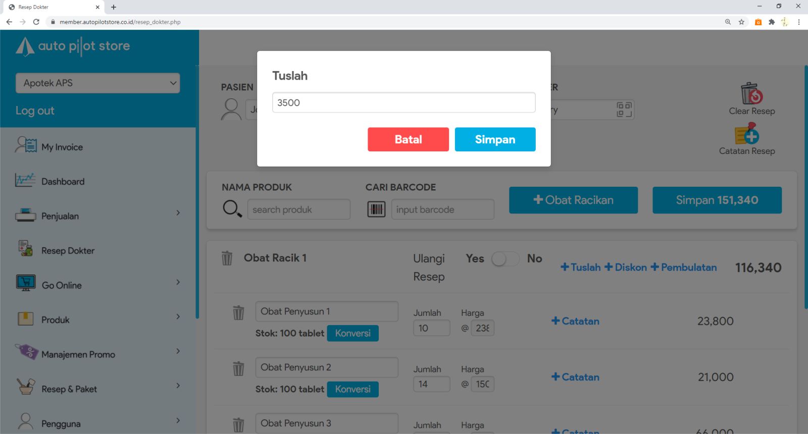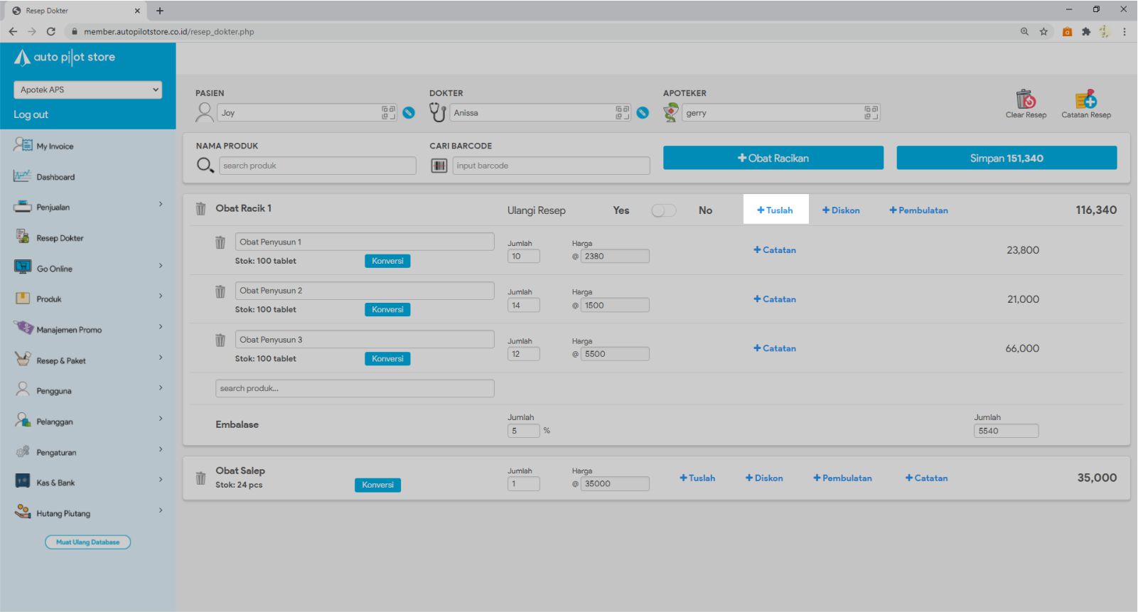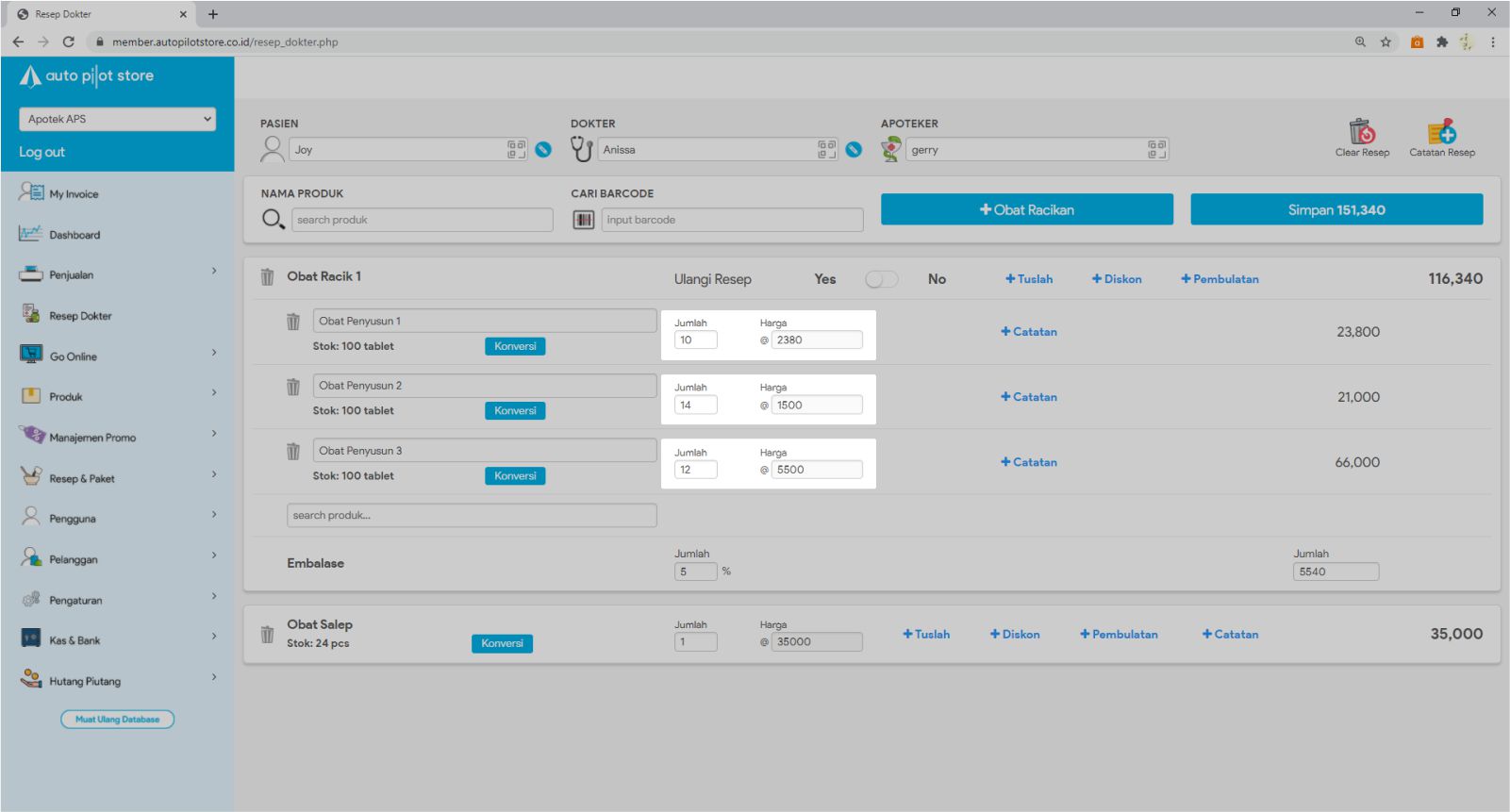 8. Atur Qty, Harga Jual, dari obat penyusun yang sudah terpilih