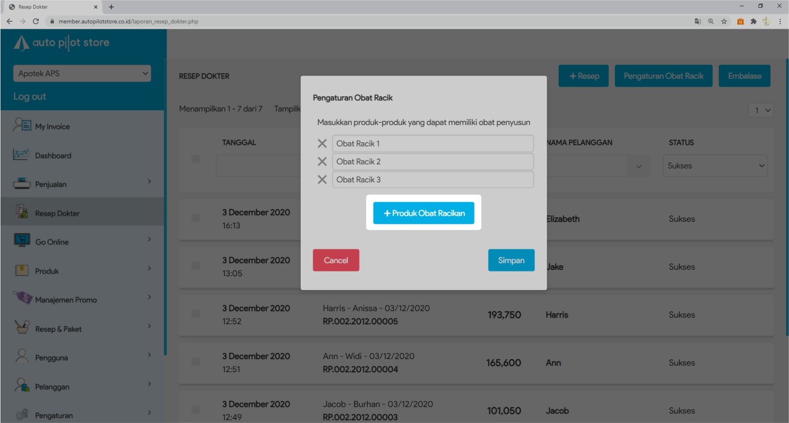 Fasilitas pengaturan obat racik berguna untuk mendaftarkan produk-produk mana yang dikategorikan sebagai obat racik, sehingga mempercepat proses pembuatan resep dokter.