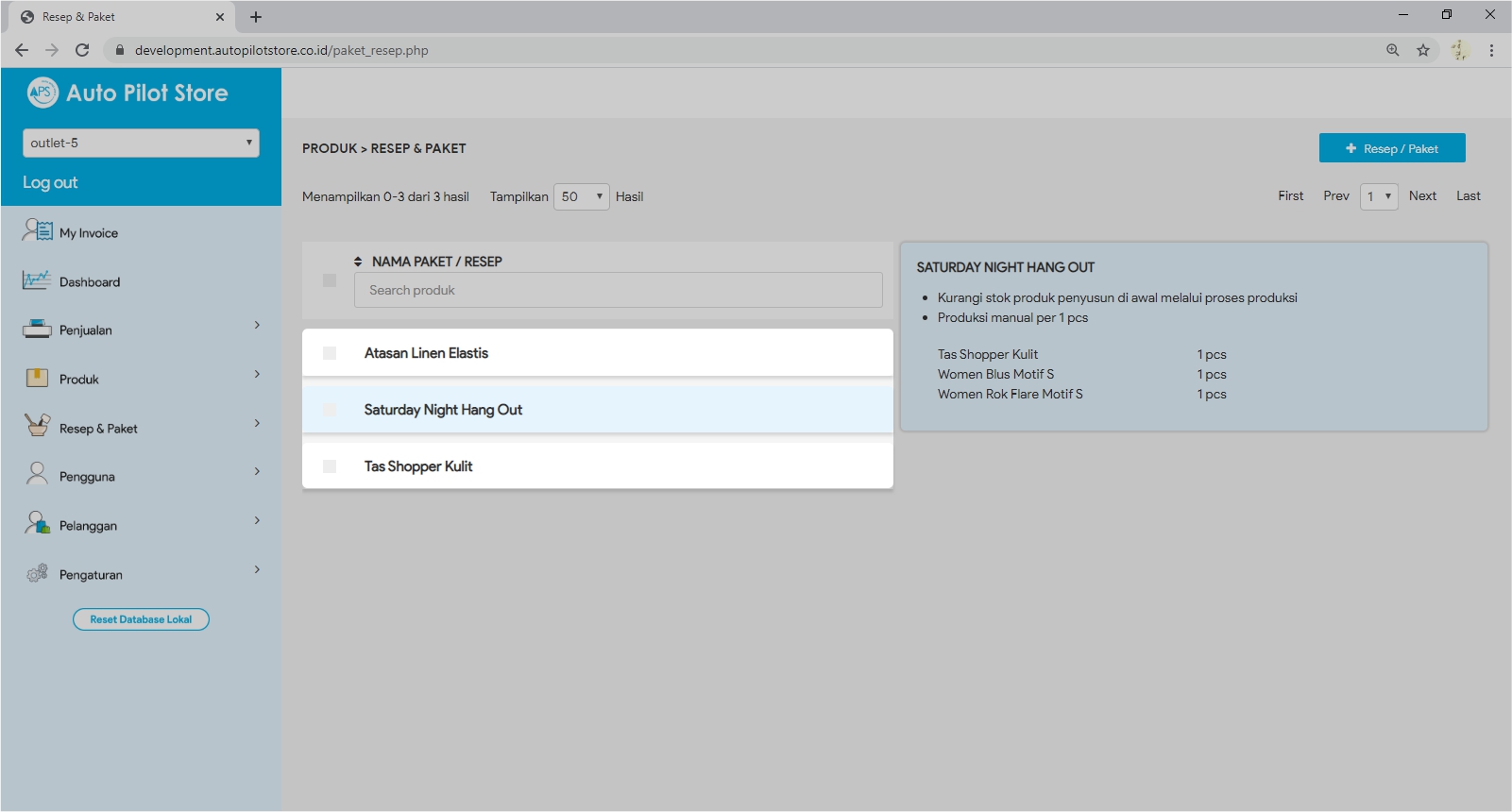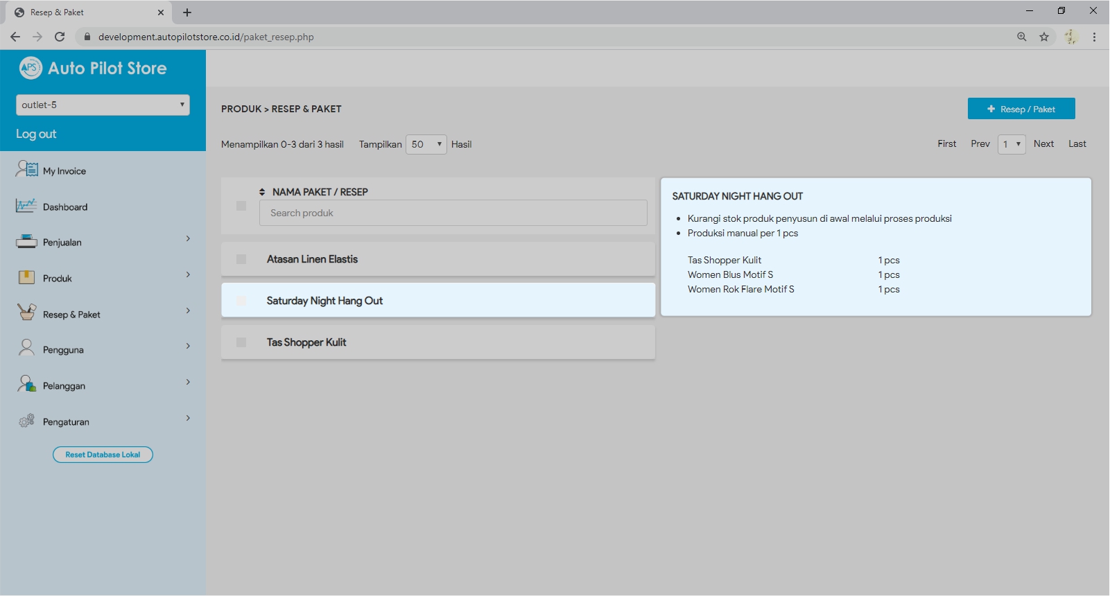 4. Pilih produk paket / resep dan komposisi produk penyusun akan tersaji di sebelah kanan