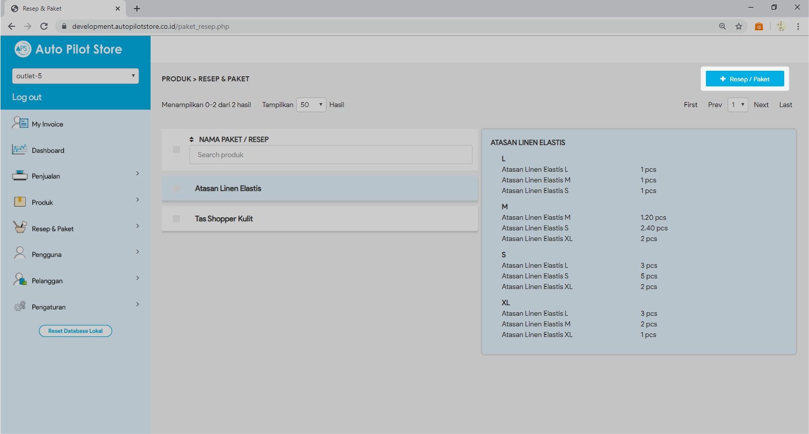 2. Pilih Sub Menu Resep & Paket