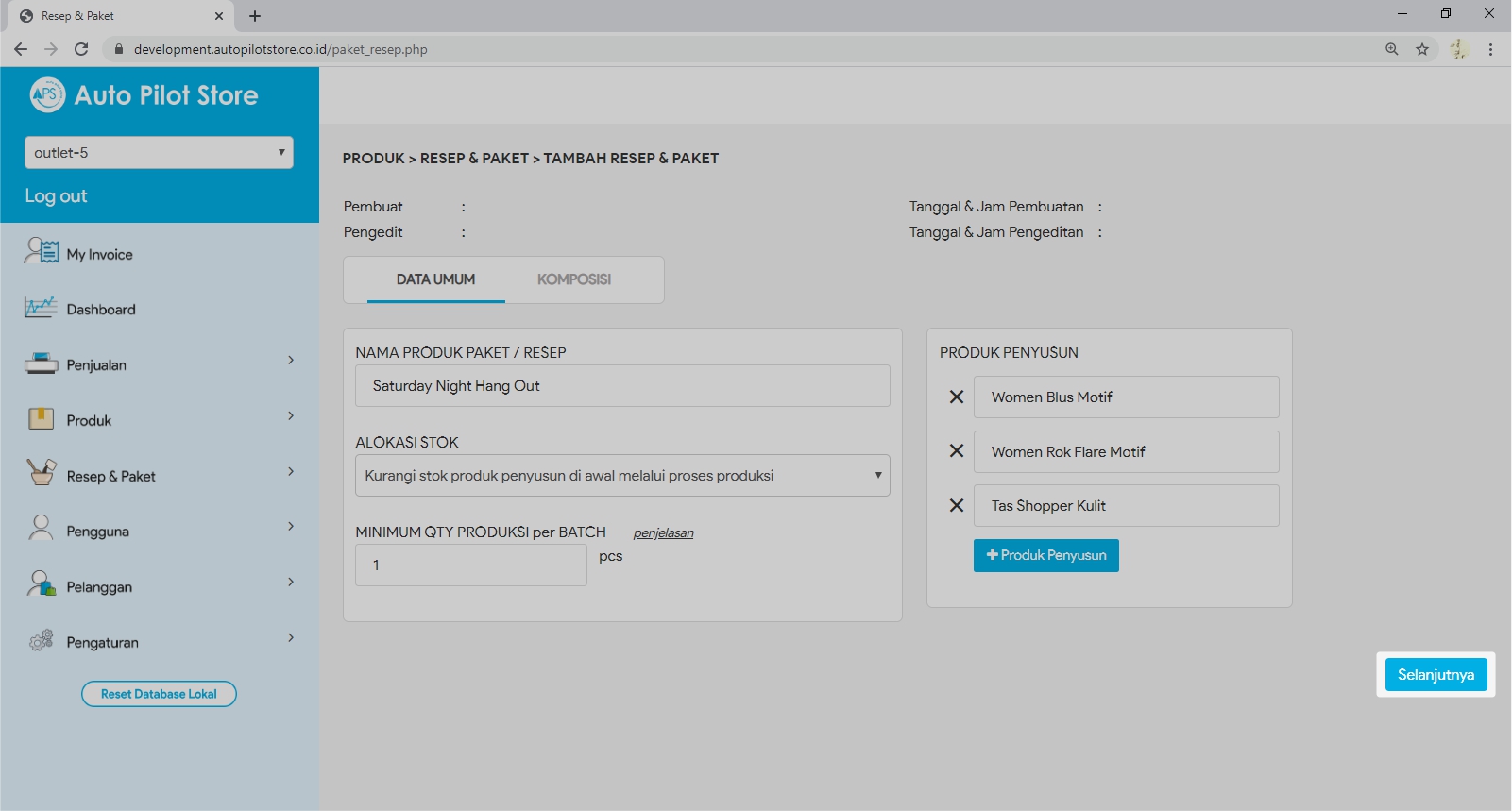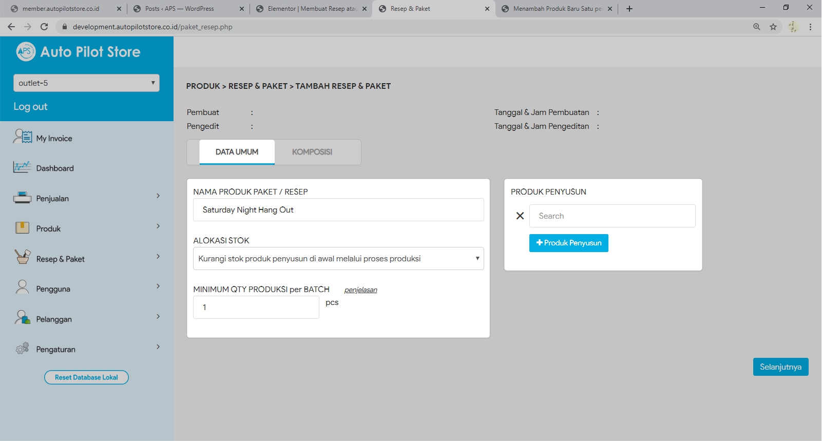 Daftarkan nama paket atau nama resep yang ingin Anda buat terlebih dahulu di fasilitas Daftar Produk