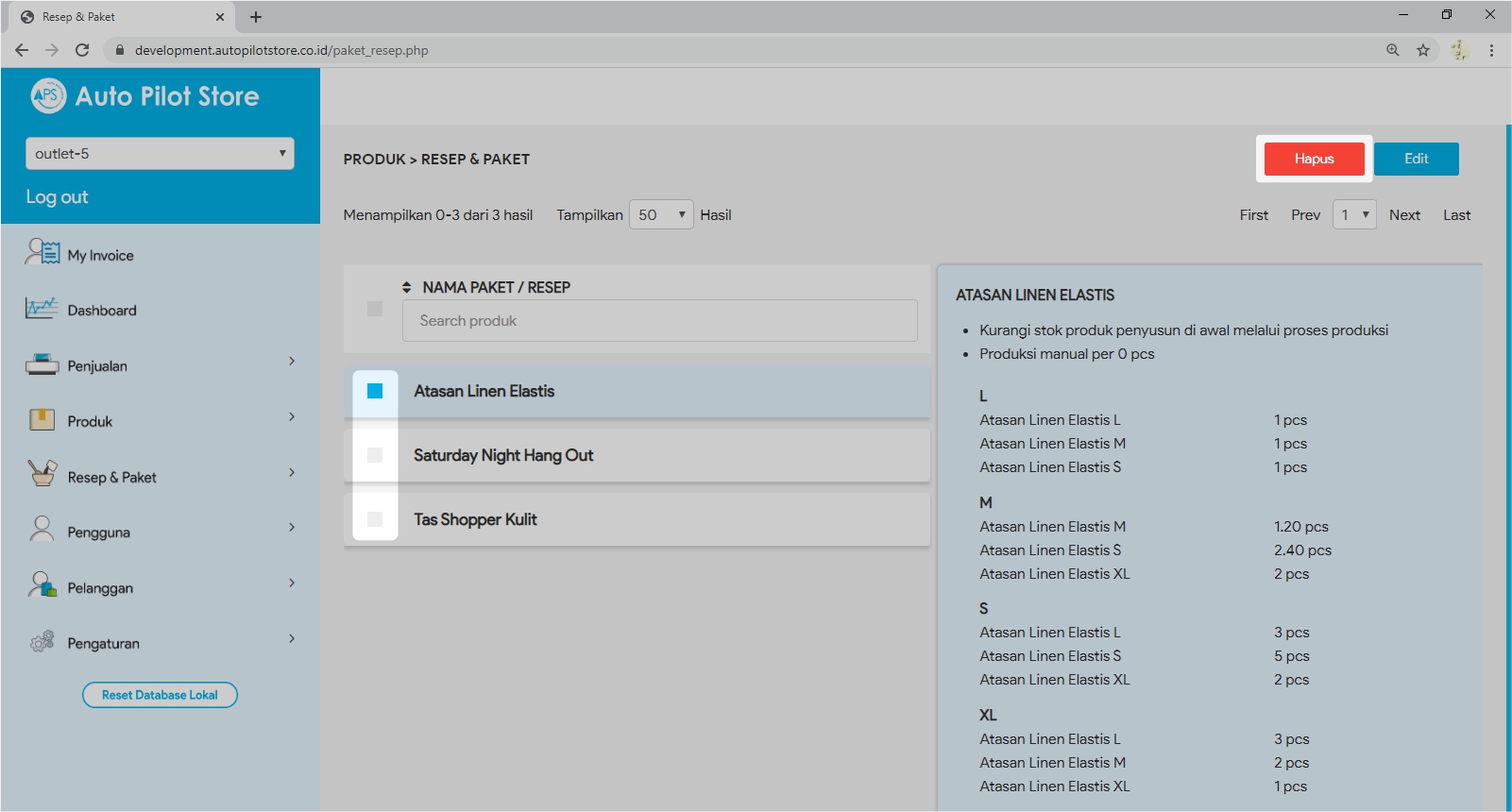 4. Beri tanda di depan nama produk paket/resep tersebut
