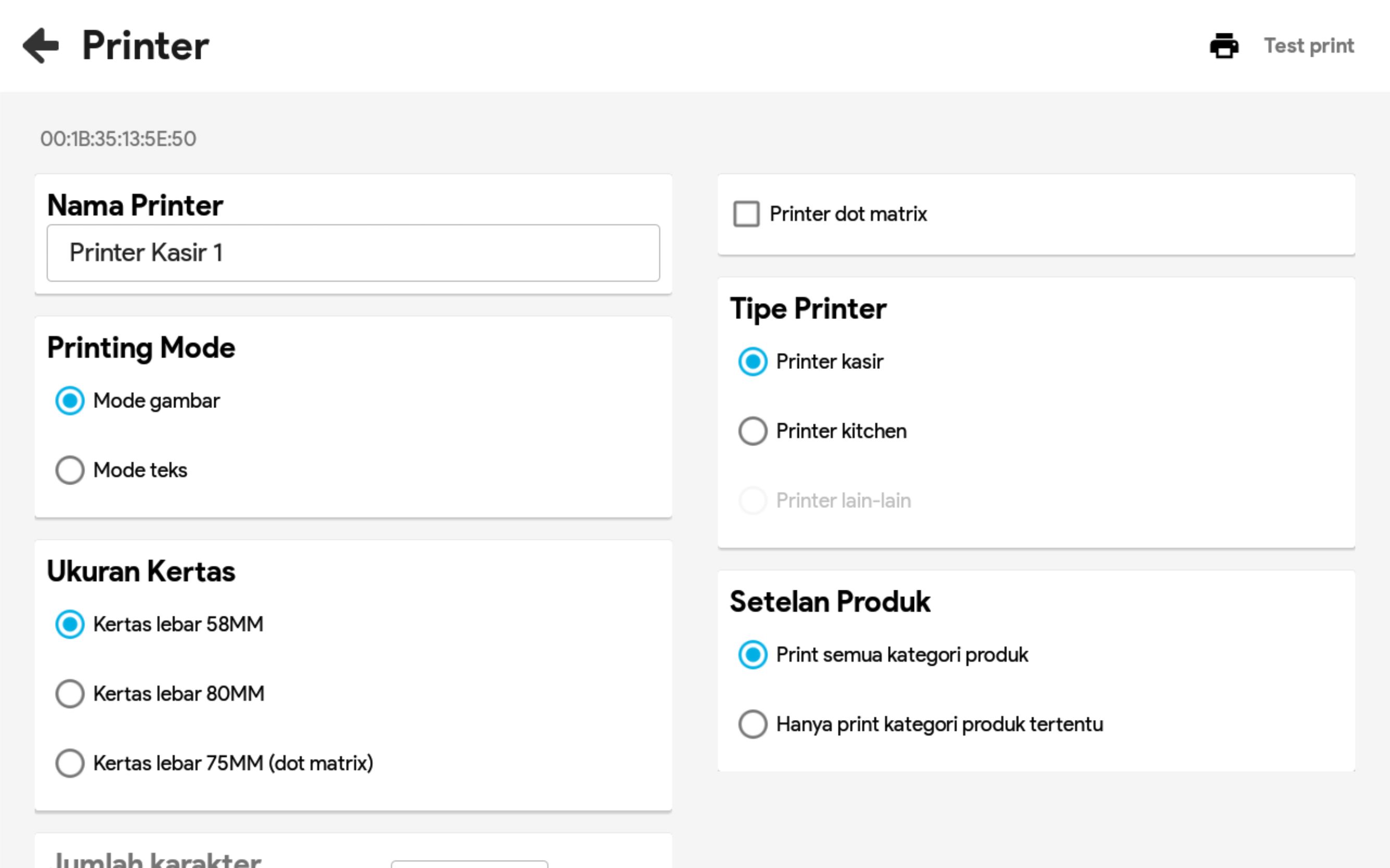 7. Isi Nama Printer contoh: Printer Kasir, Printer Dapur, Printer Bar, dll