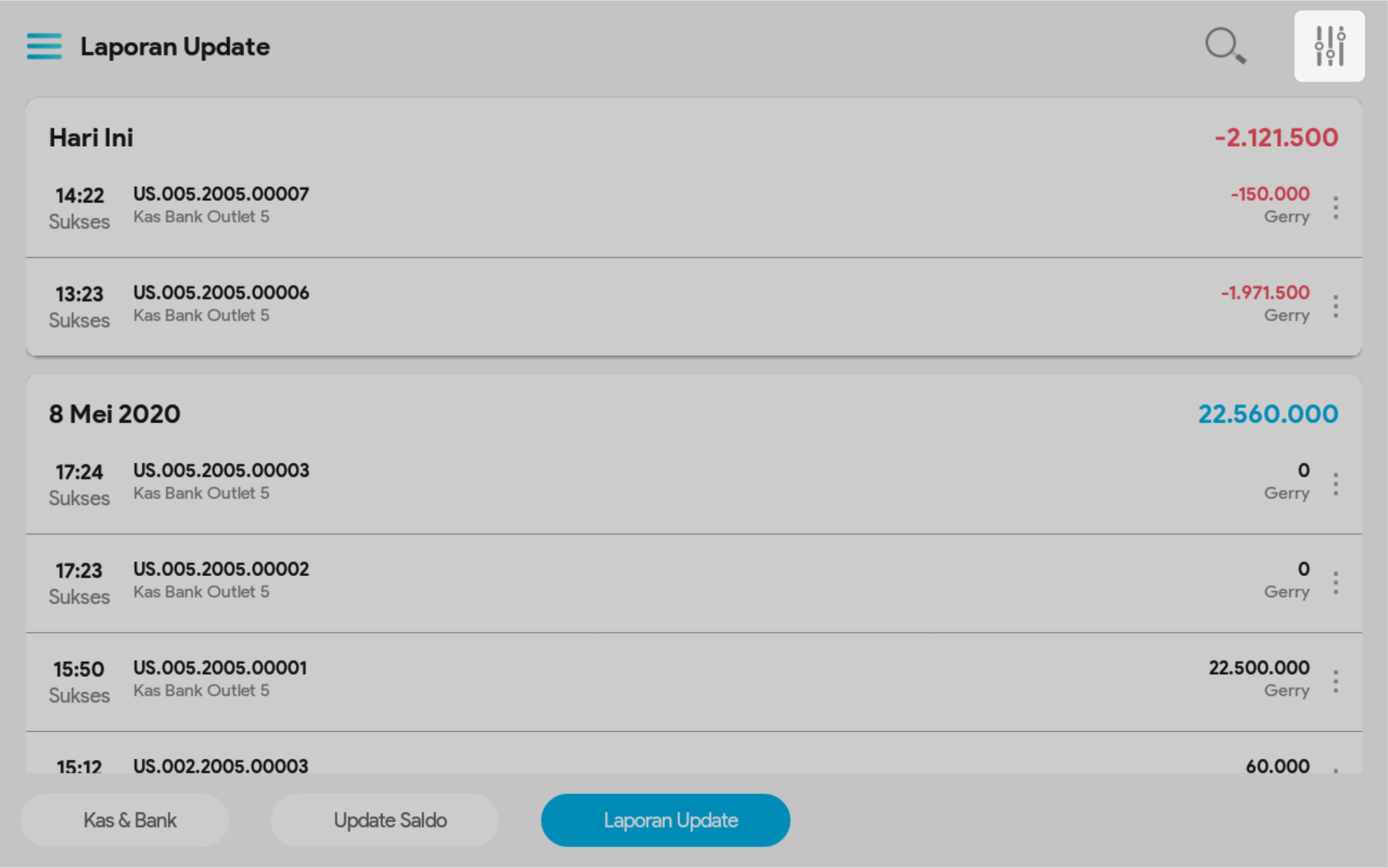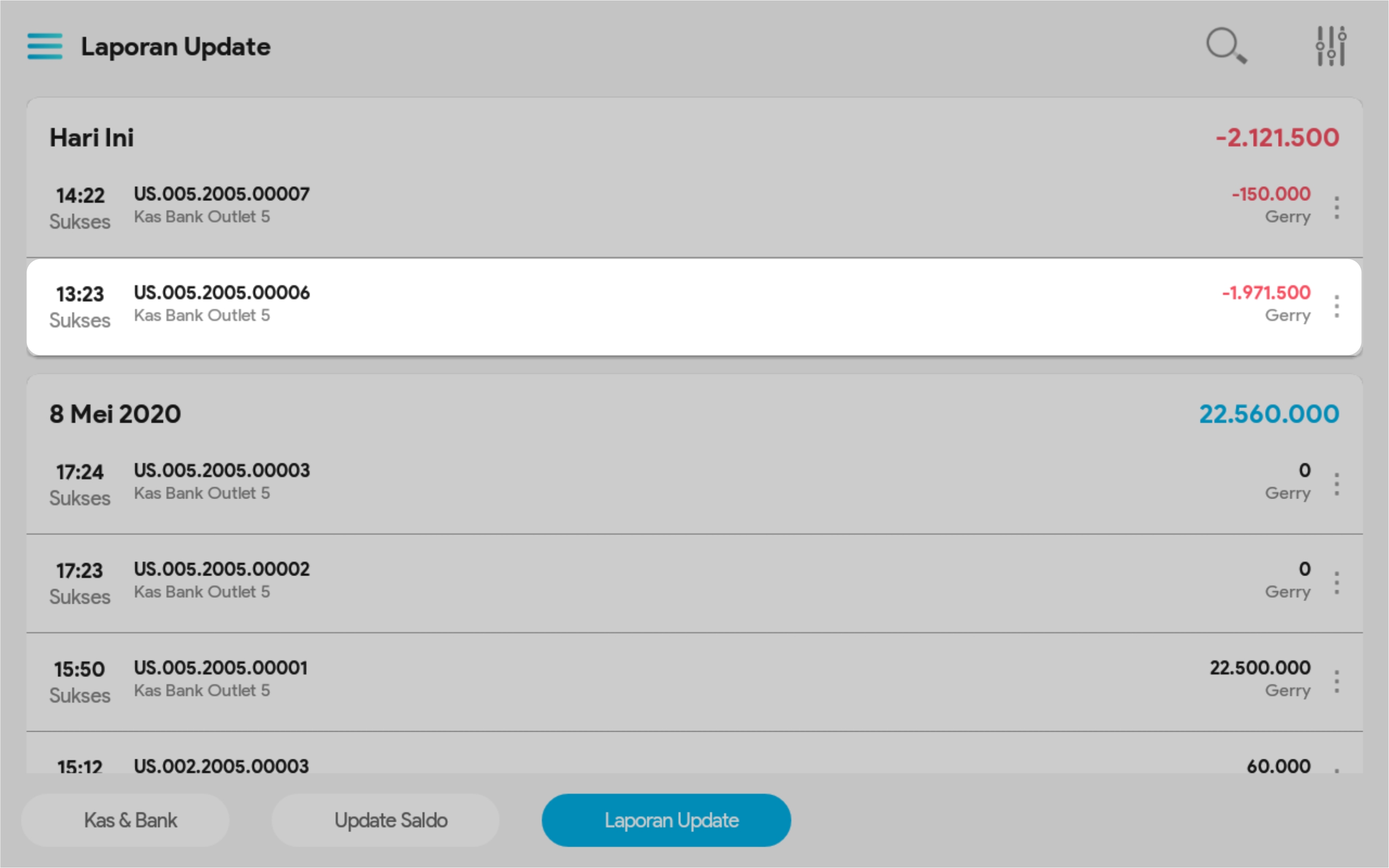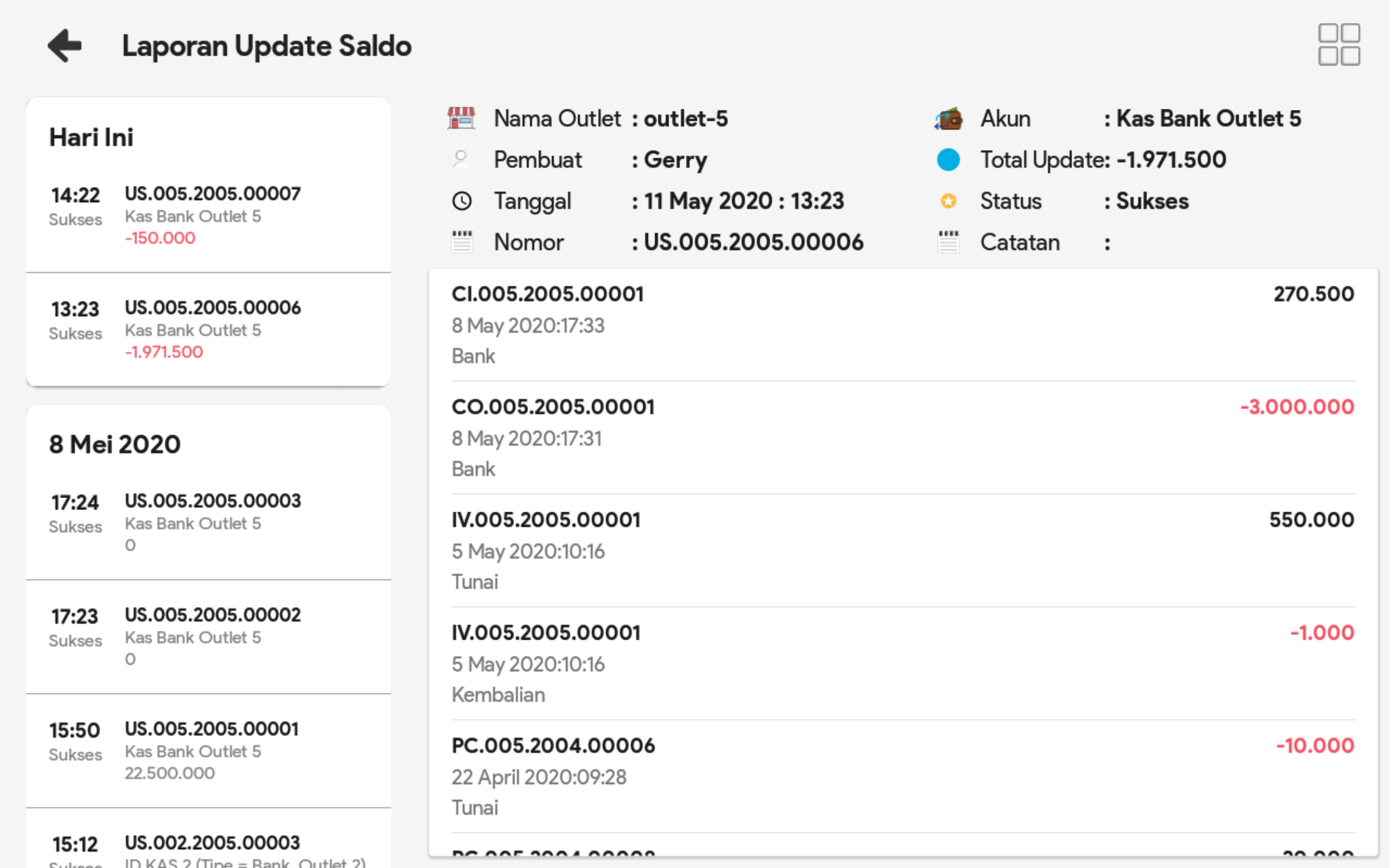 4. Data detail transaksi update saldo tersaji dengan lengkap