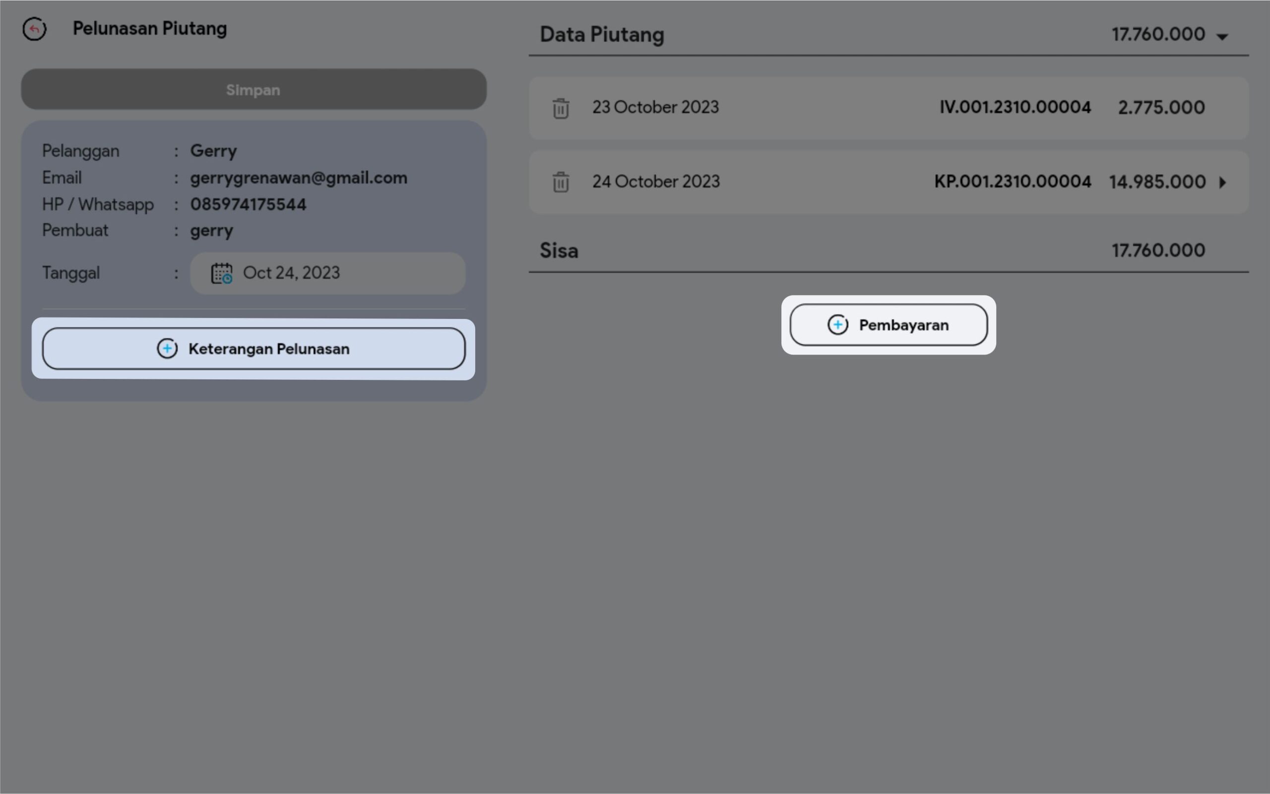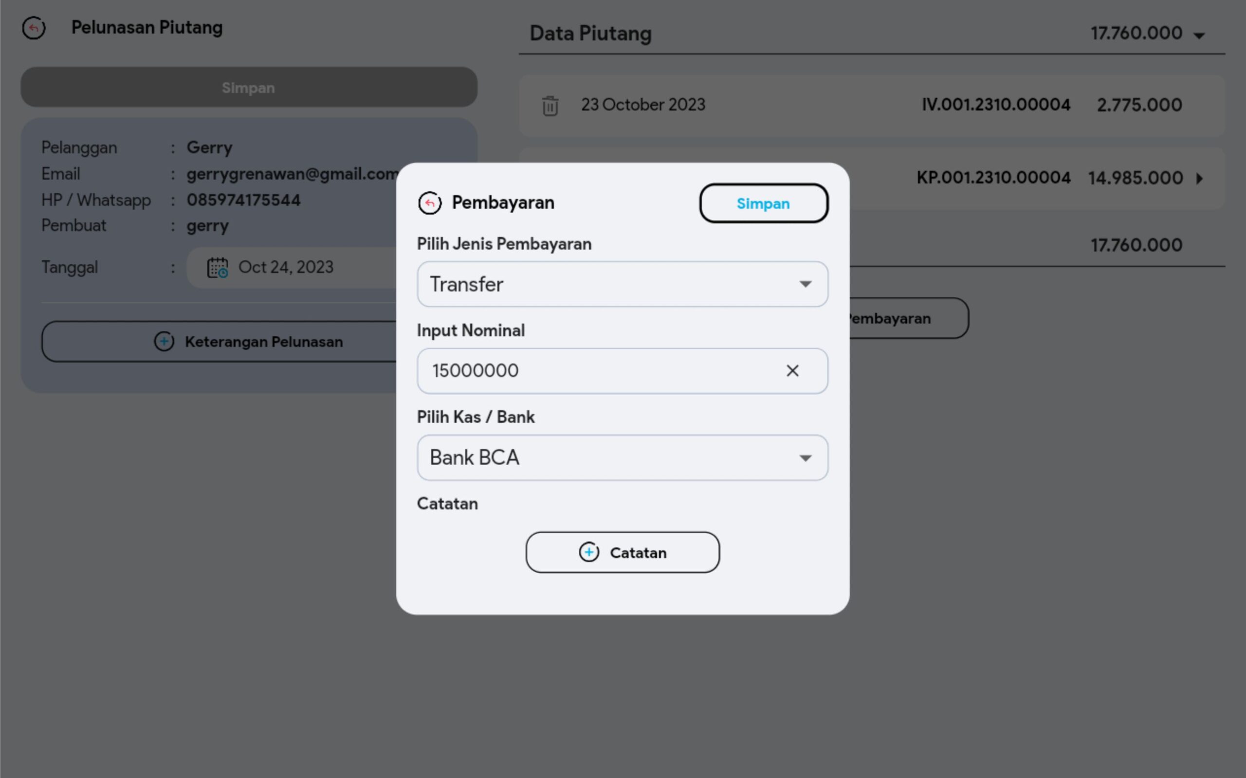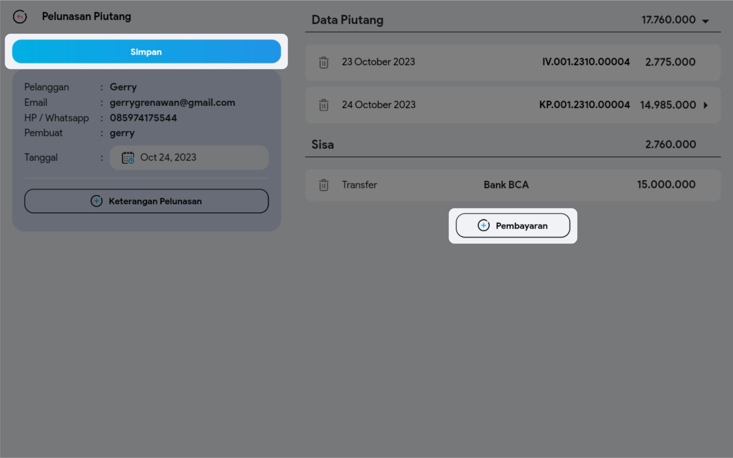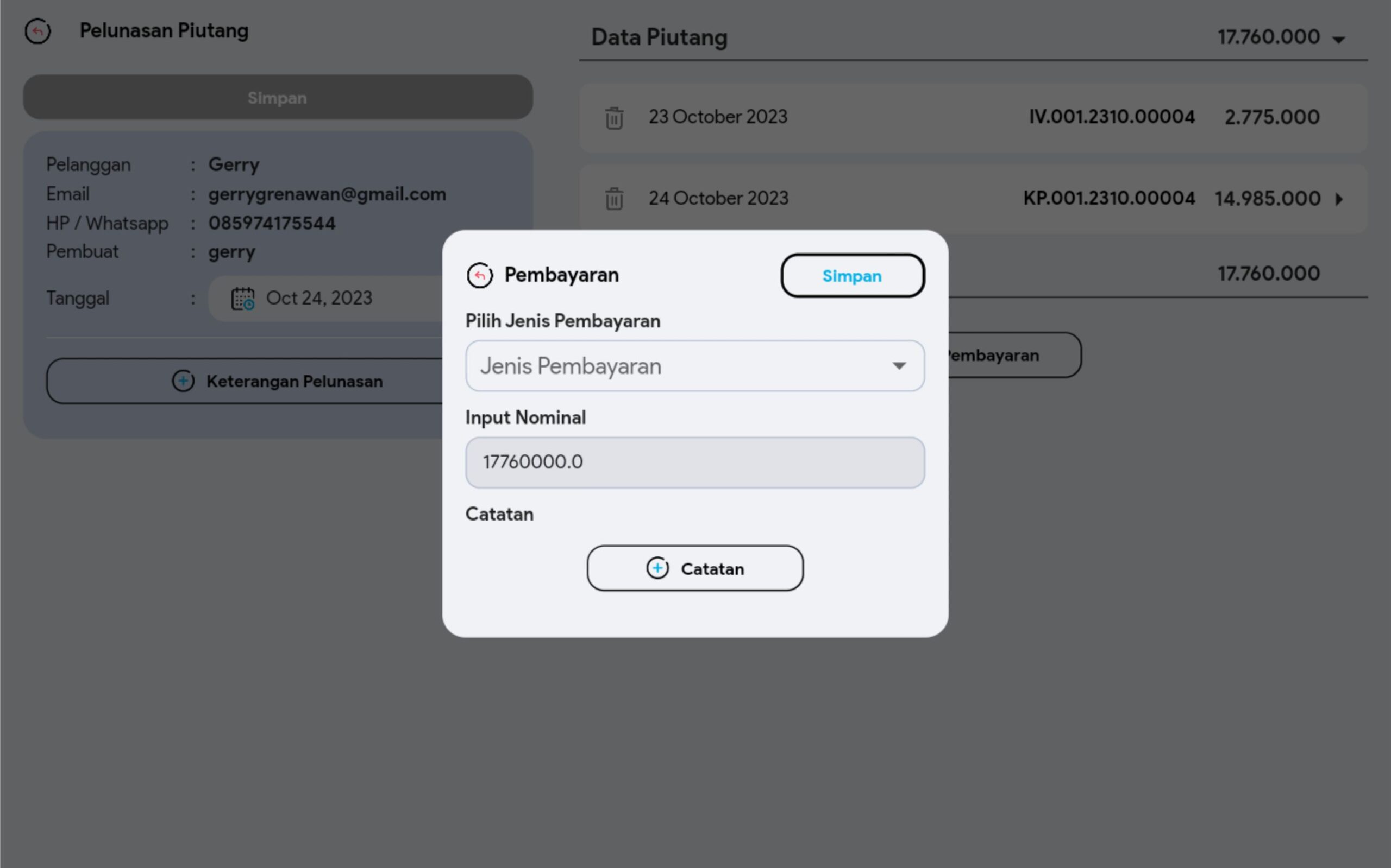 10. Pilih +Pembayaran bila ingin memasukkan tipe pembayaran lain. Jika sudah pilih Simpan