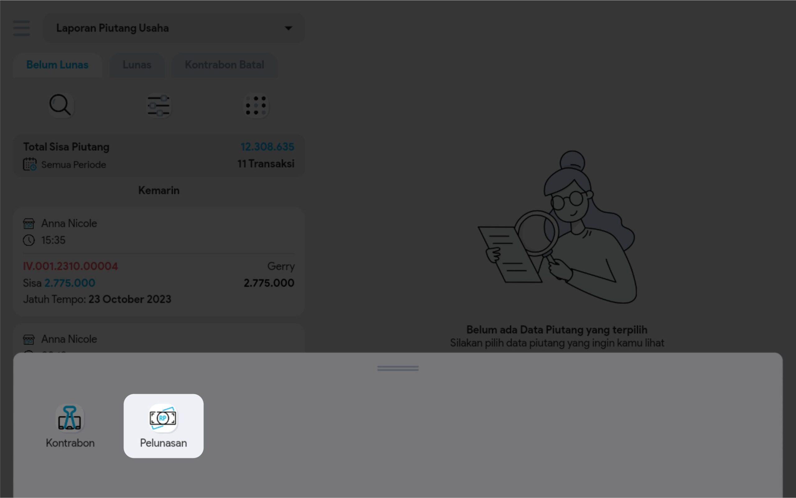 Ada 2 cara untuk dapat masuk ke dalam menu pelunasan piutang