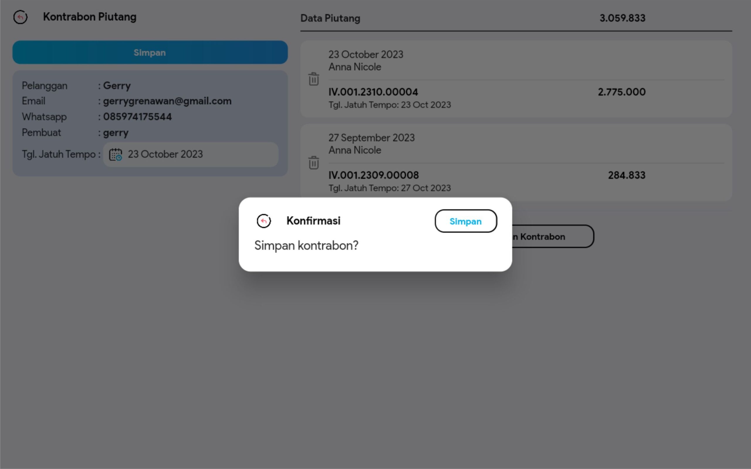 8. Silahkan masukkan catatan kontrabon (jika diperlukan), jika sudah klik button Simpan