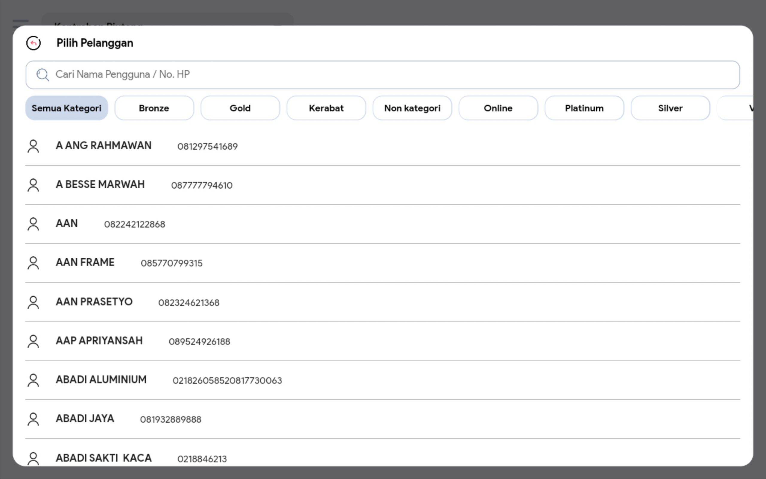 4. Anda masih dapat mengubah pelanggan, jika Anda salah mengklik pelanggan, dengan mengklik kolom pelanggan