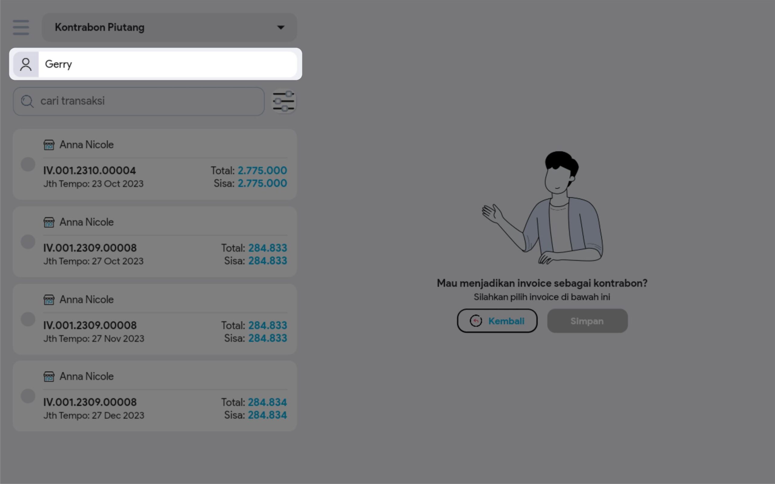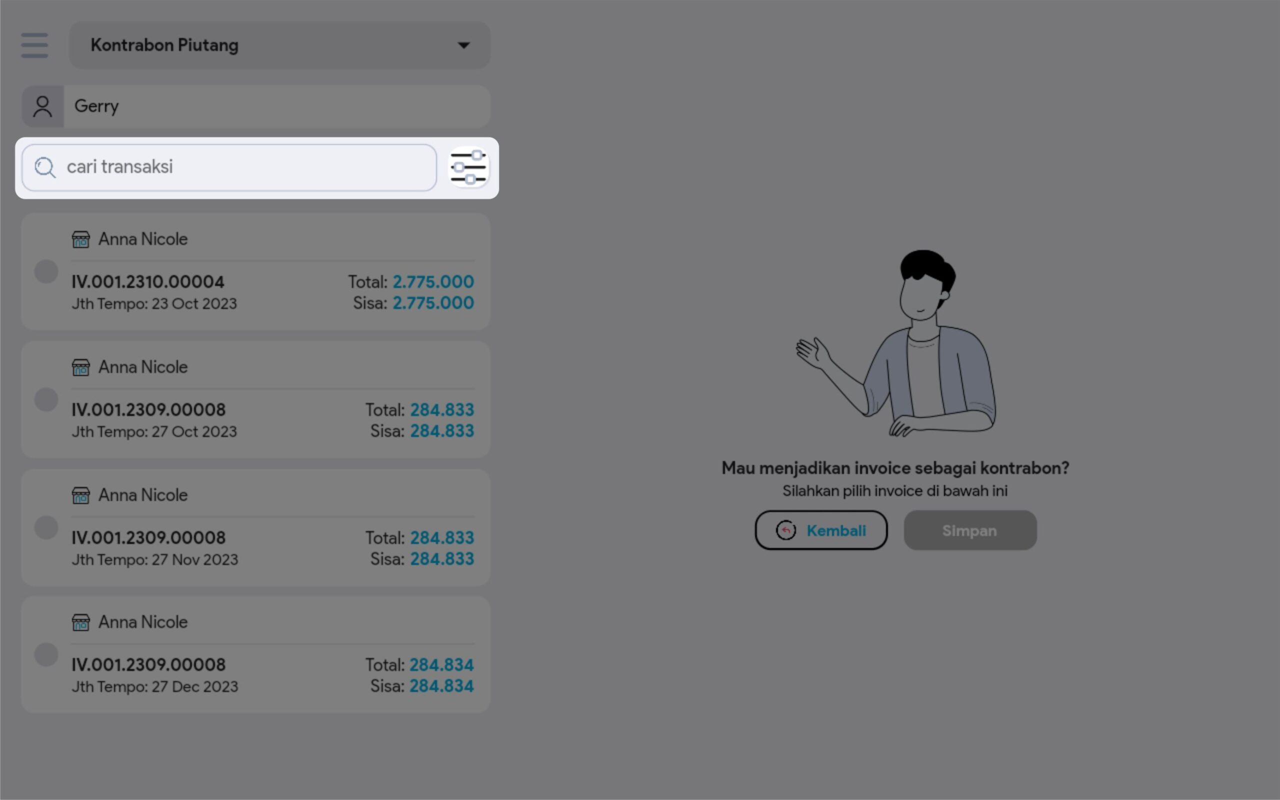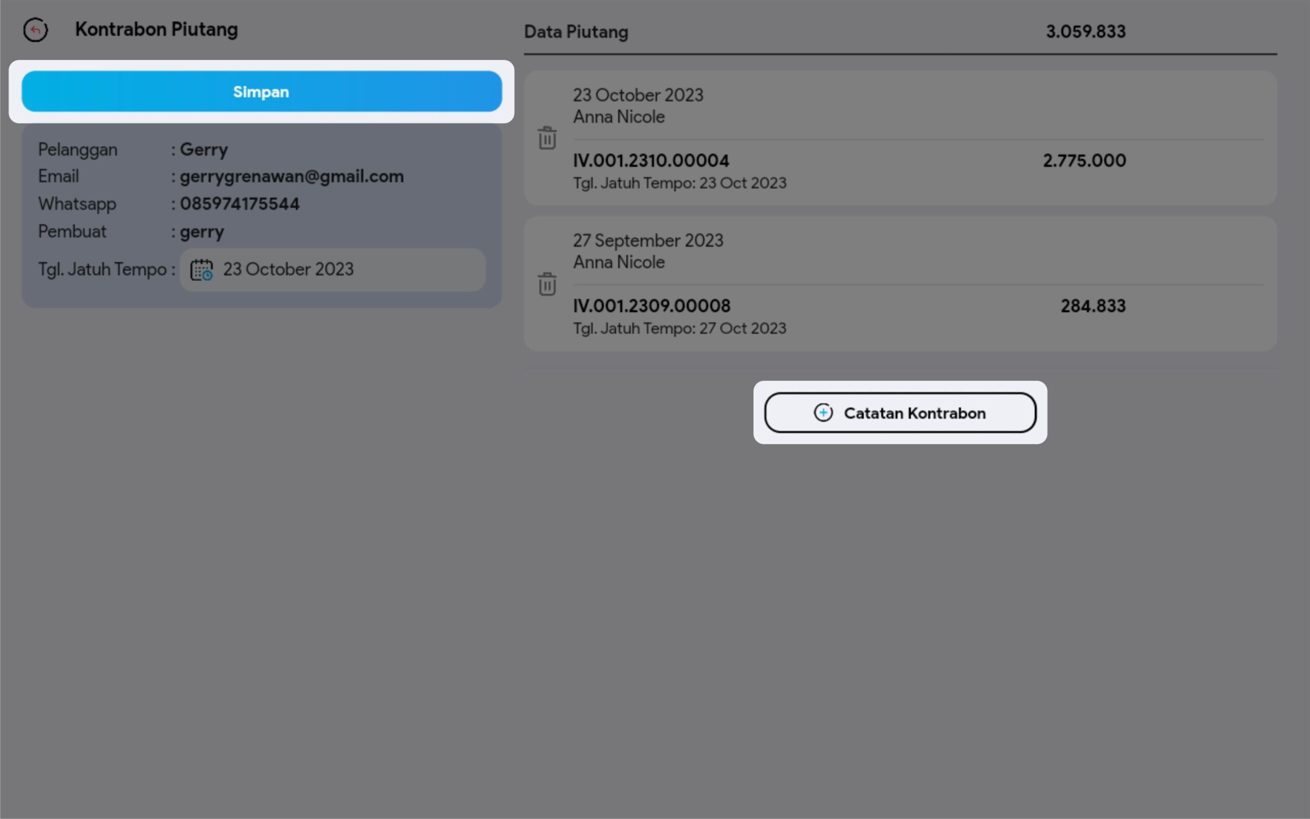 6. Pilih transaksi yang ingin dijadikan kontrabon, kemudian klik button Simpan