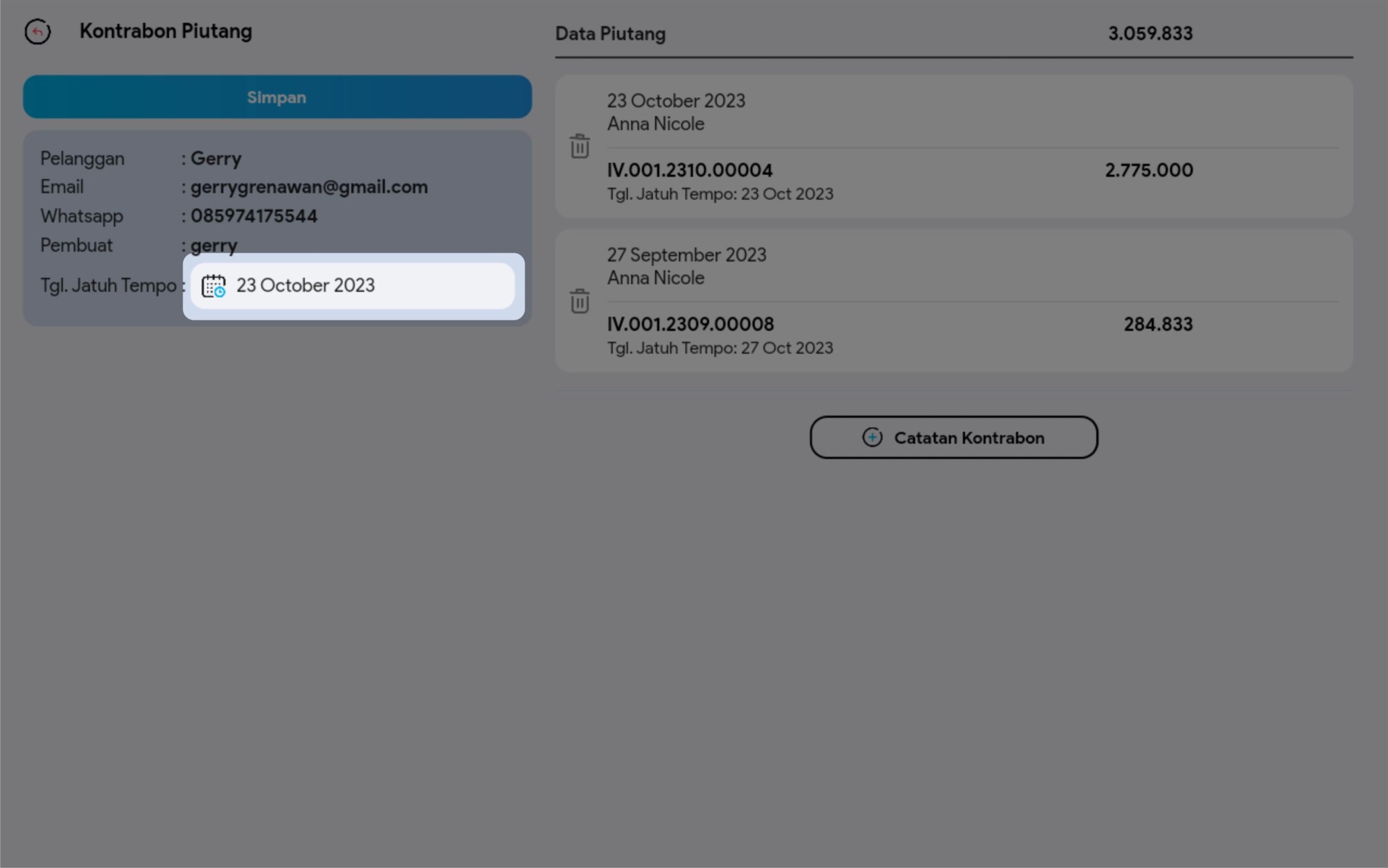 7. Anda dapat mengubah tanggal jatuh tempo, dengan mengklik kolom tanggal jatuh tempo