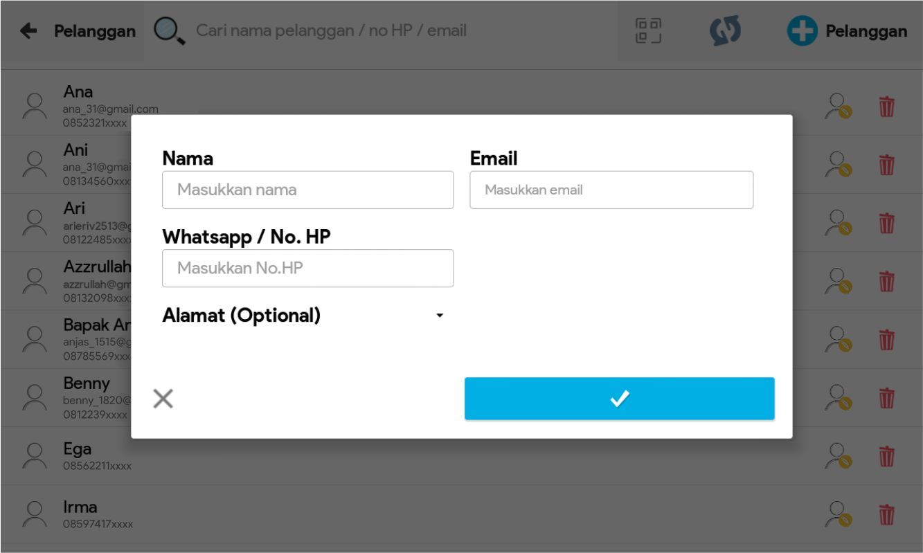 3. Isi identitas Pelanggan. Data wajib yang dimasukkan adalah Nama.