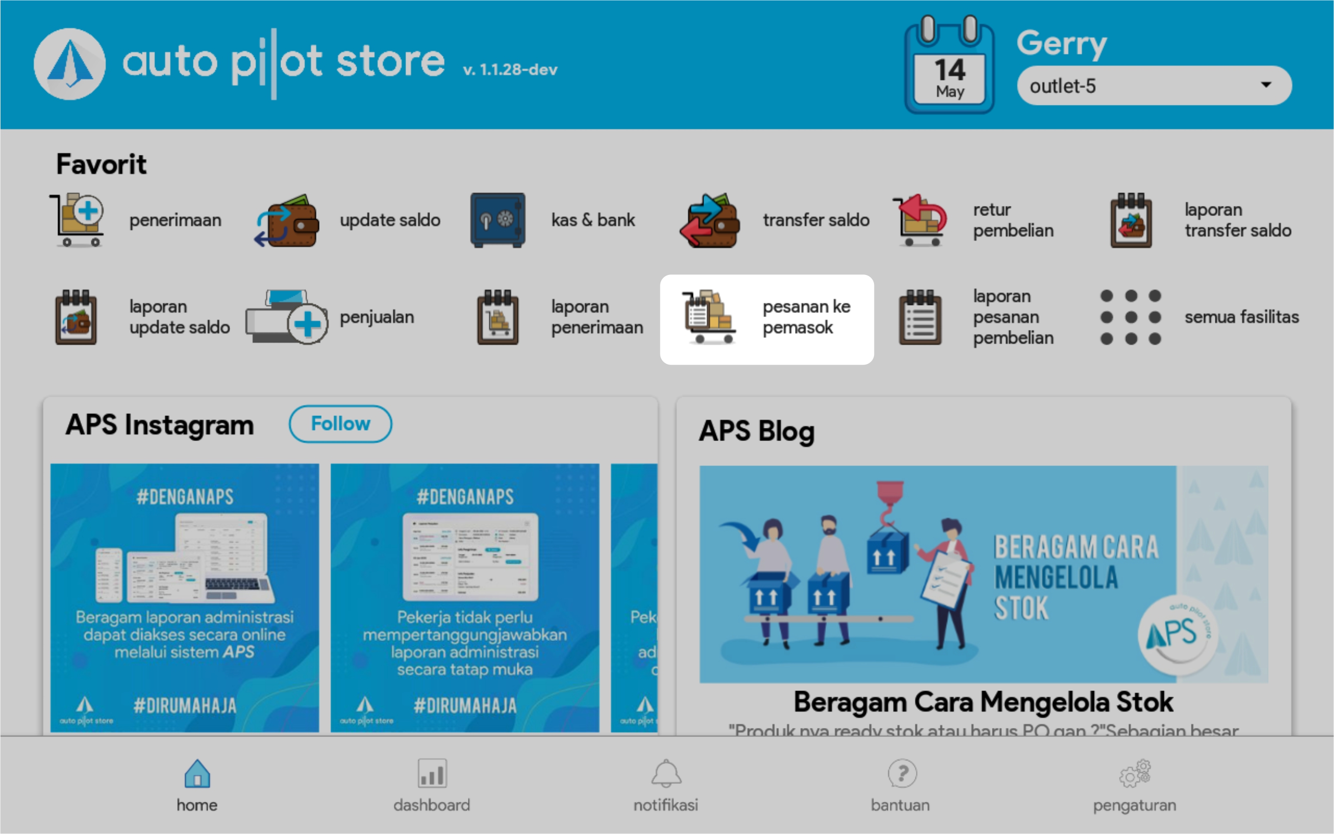 1. Pilih fasilitas Pesanan ke Pemasok