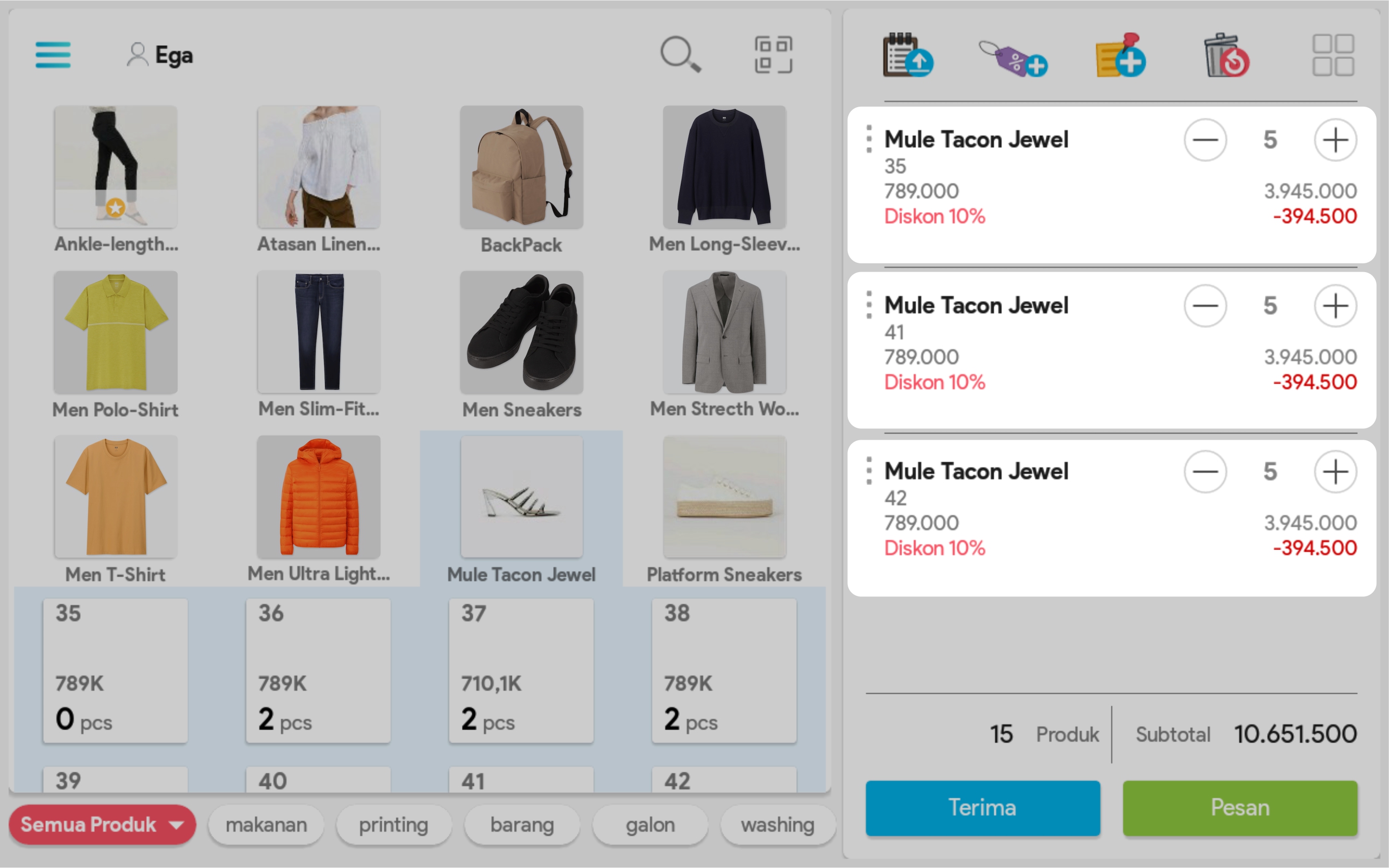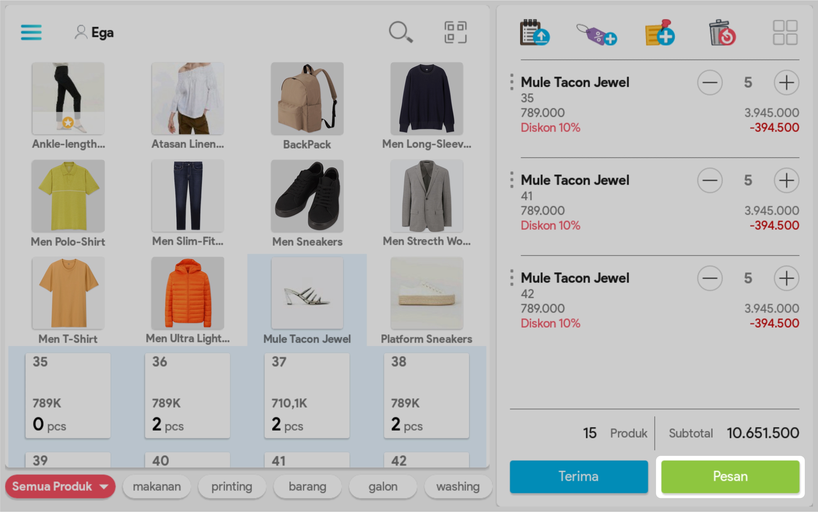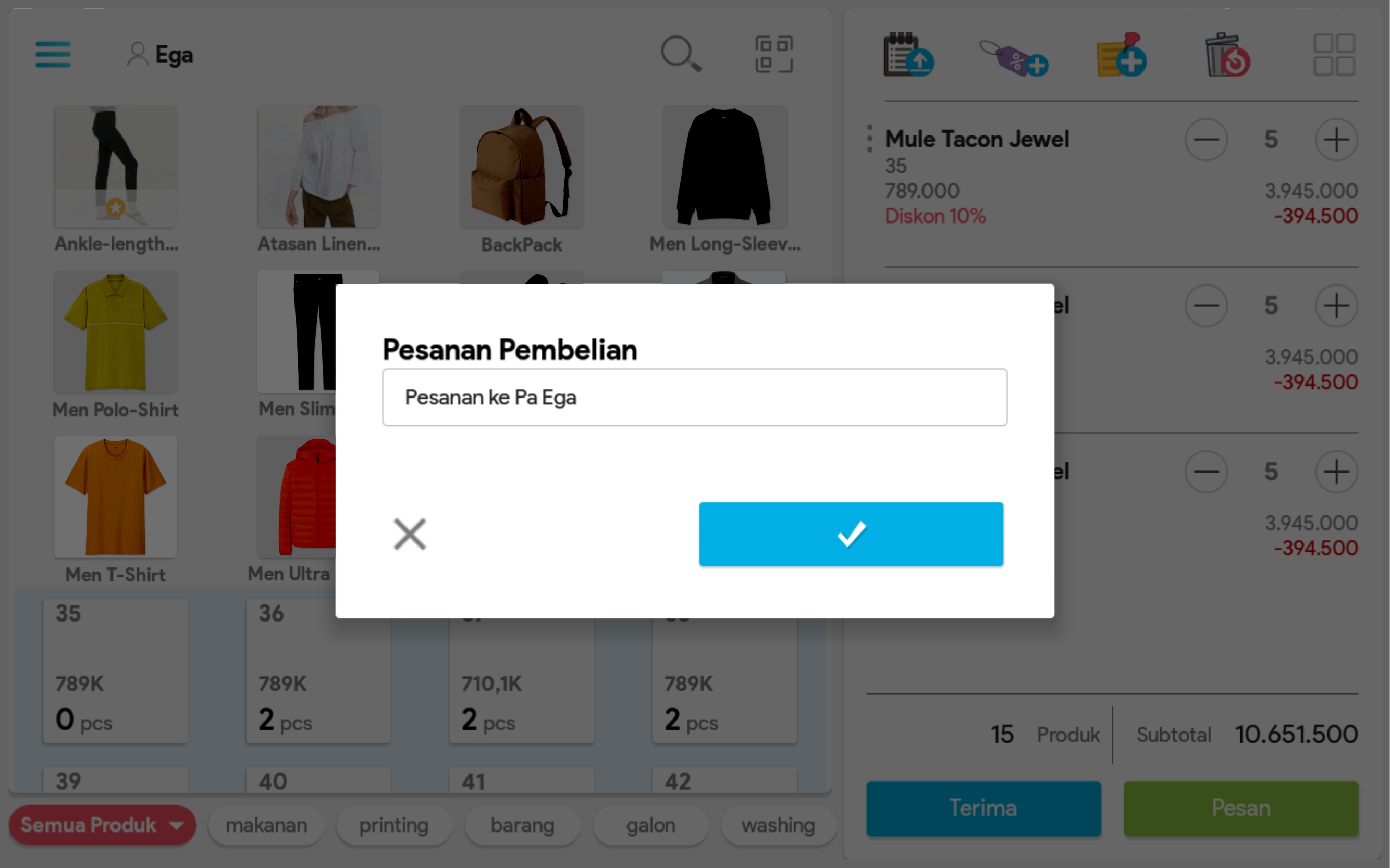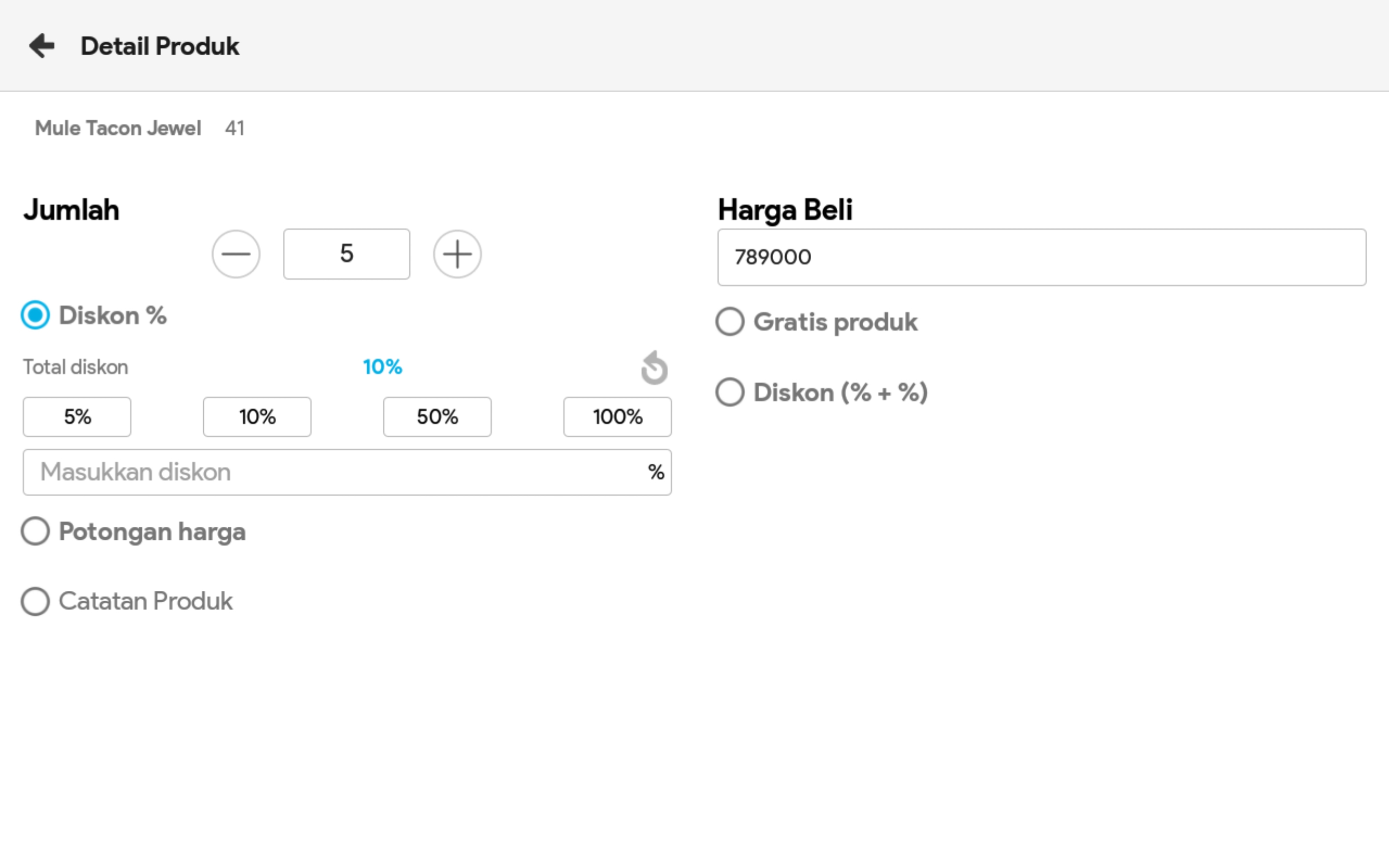 6. Pilih produk untuk mengatur jumlah produk, mencatat diskon per produk (opsional)