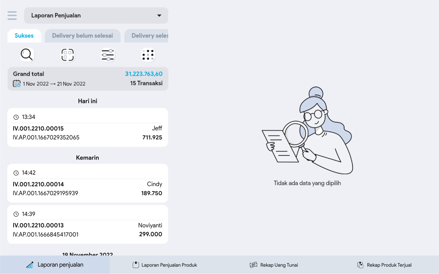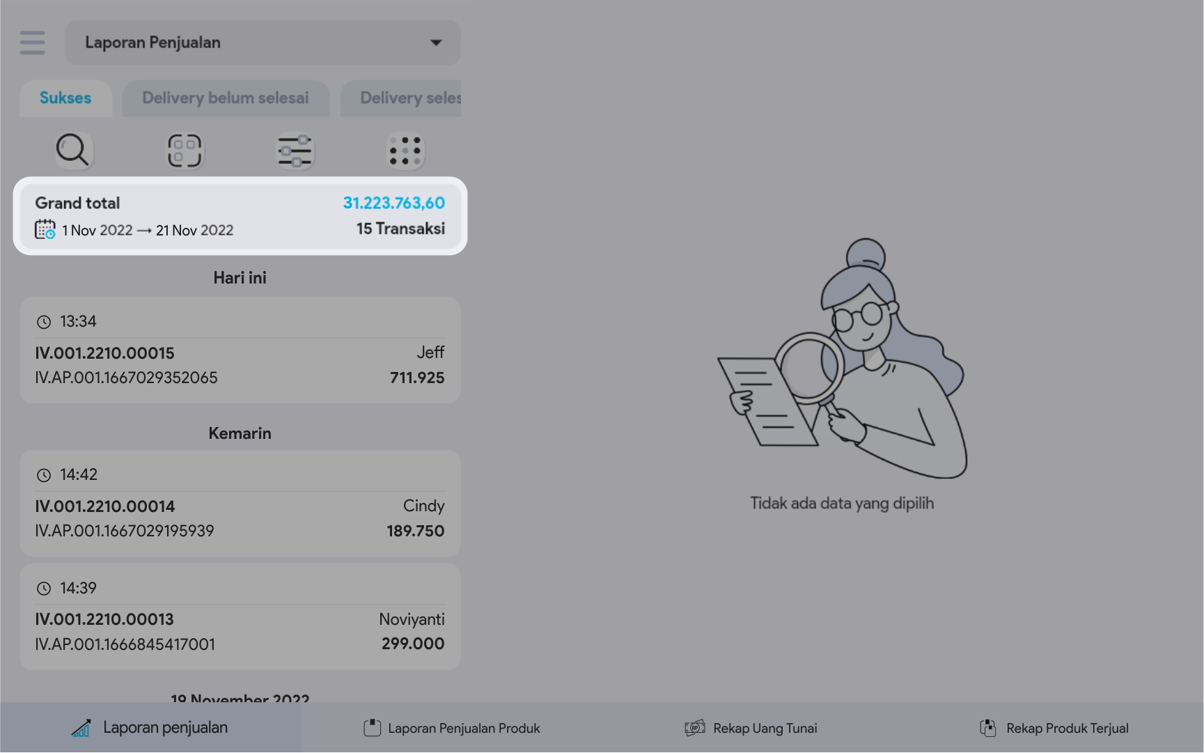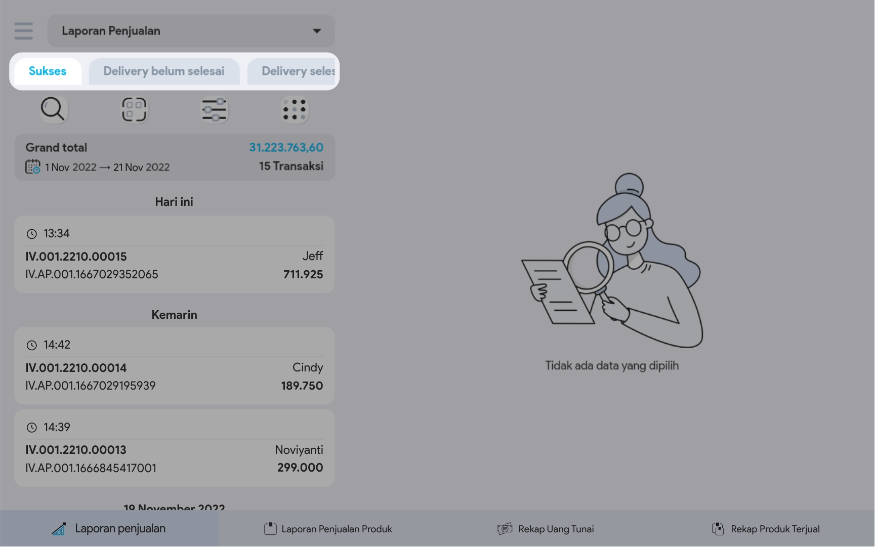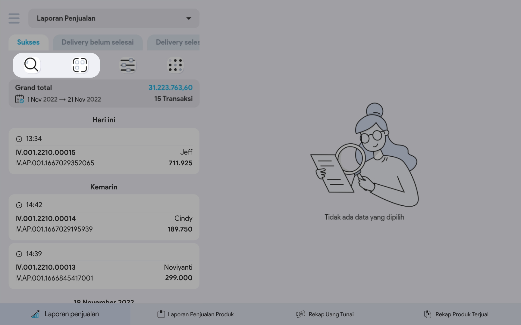 5. Pilih Filter untuk melakukan pencarian data penjualan yang lebih terperinci.