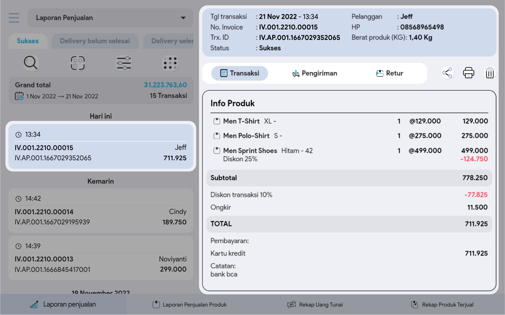 8. Detail informasi tentang transaksi penjualan yang dipilih, disajikan dengan lengkap