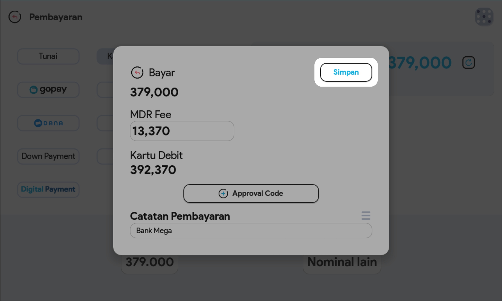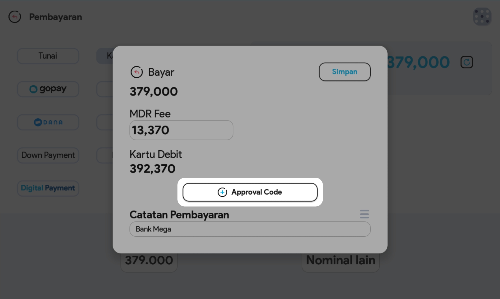 7. Catat approval code (opsional)