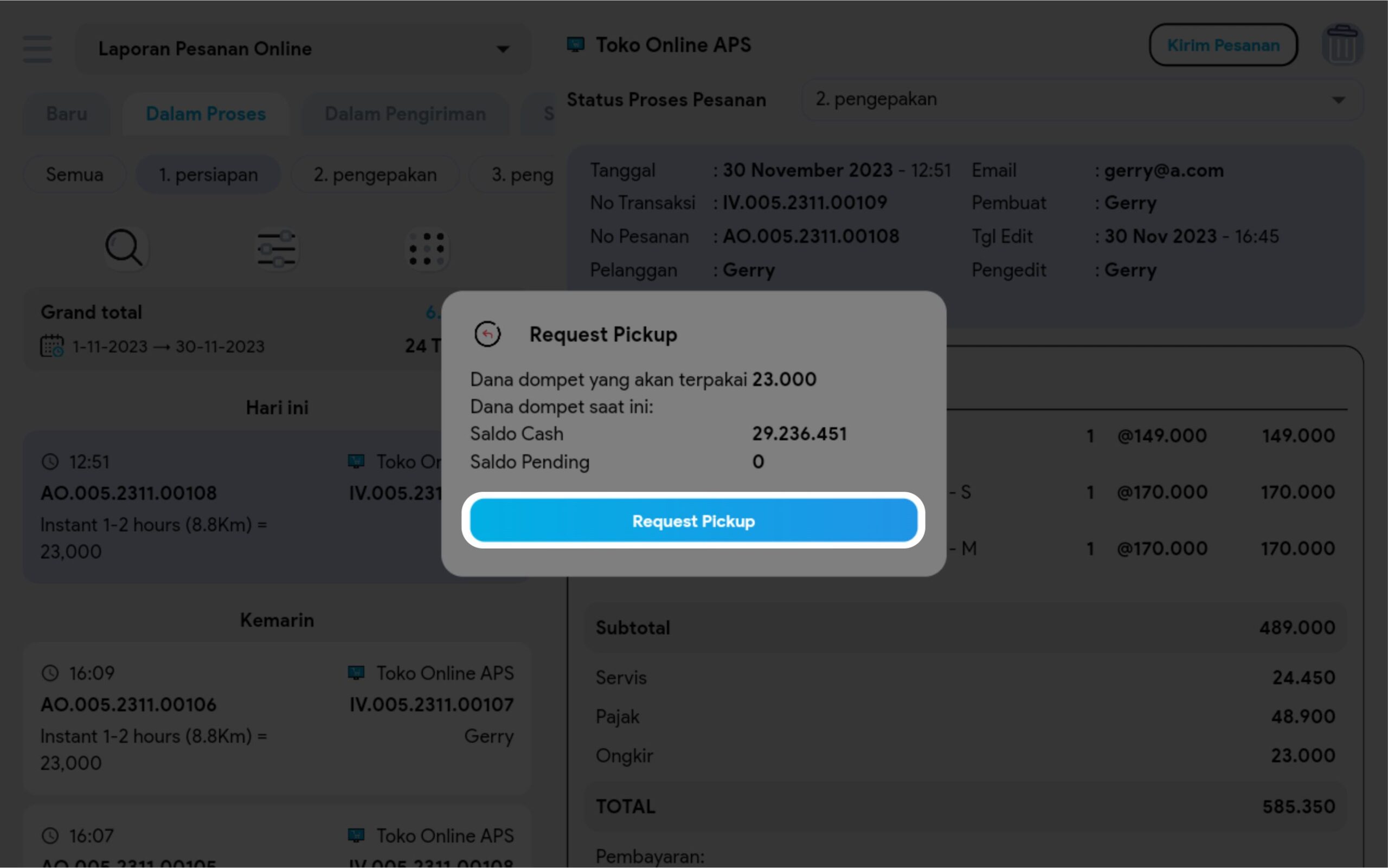 *Request Pick Up Kurir hanya dapat dilakukan untuk transaksi yang bersumber dari toko online APS dan menggunakan kurir instant.