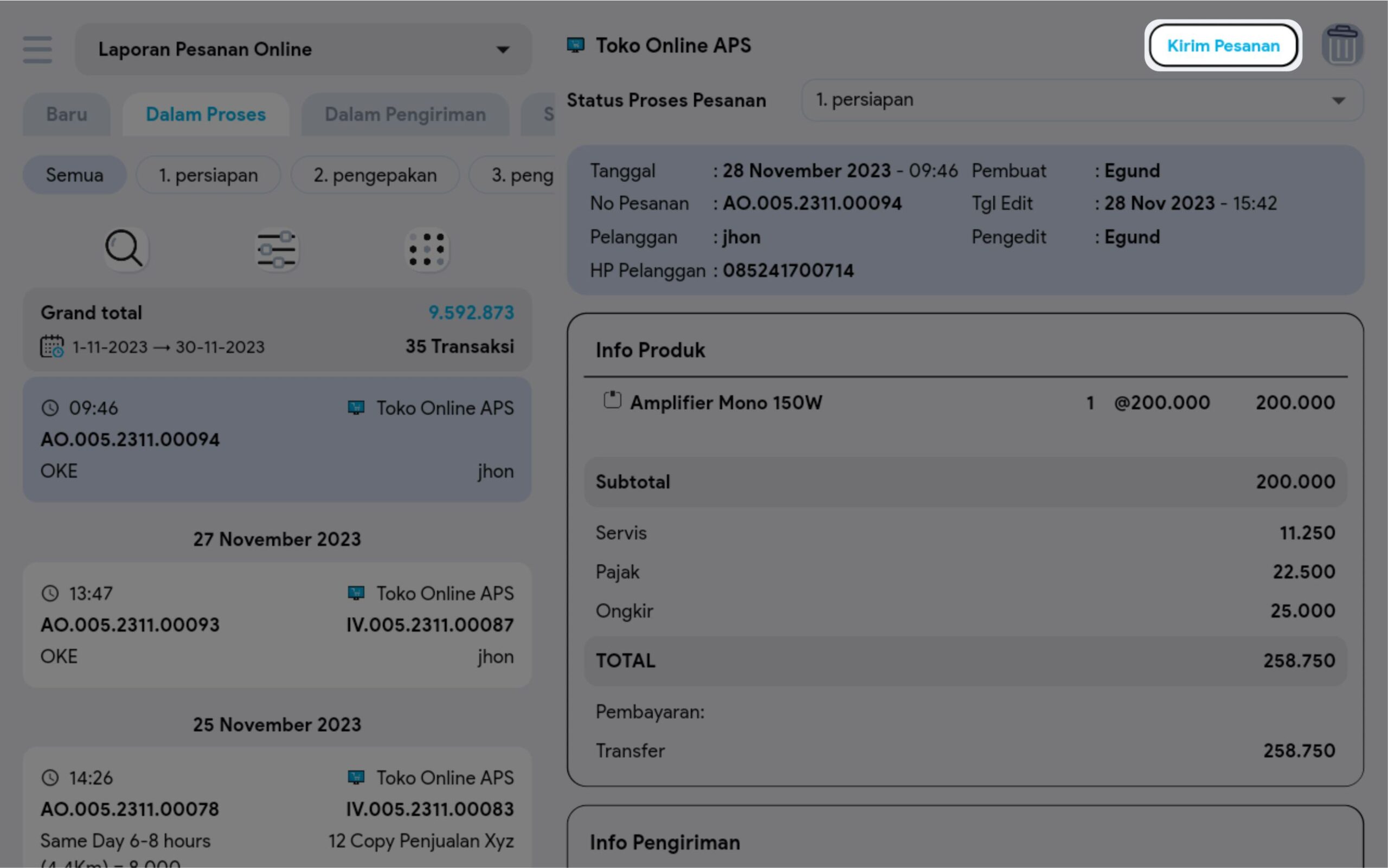 Klik button Kirim Pesanan