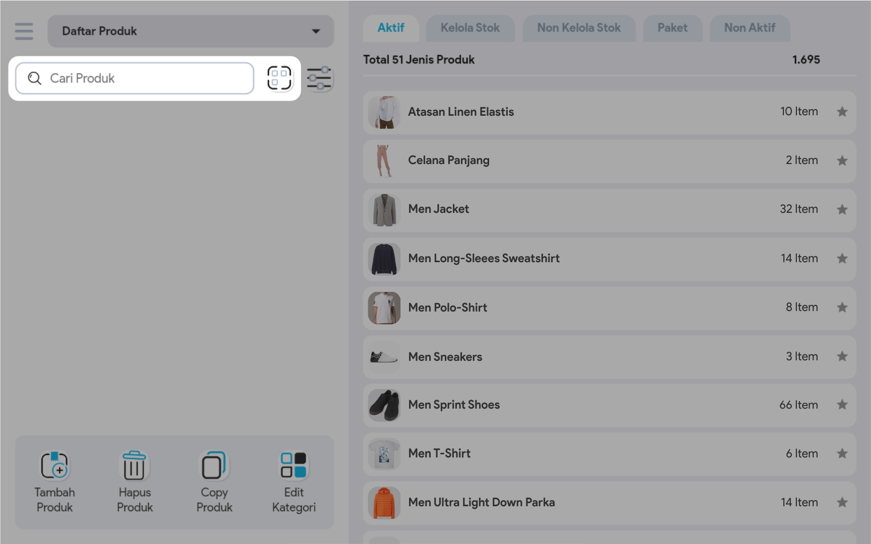 2. Masukkan Nama Produk yang ingin disesuaikan pada kolom pencarian atau gunakan pencarian barcode