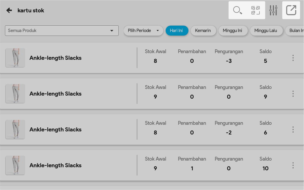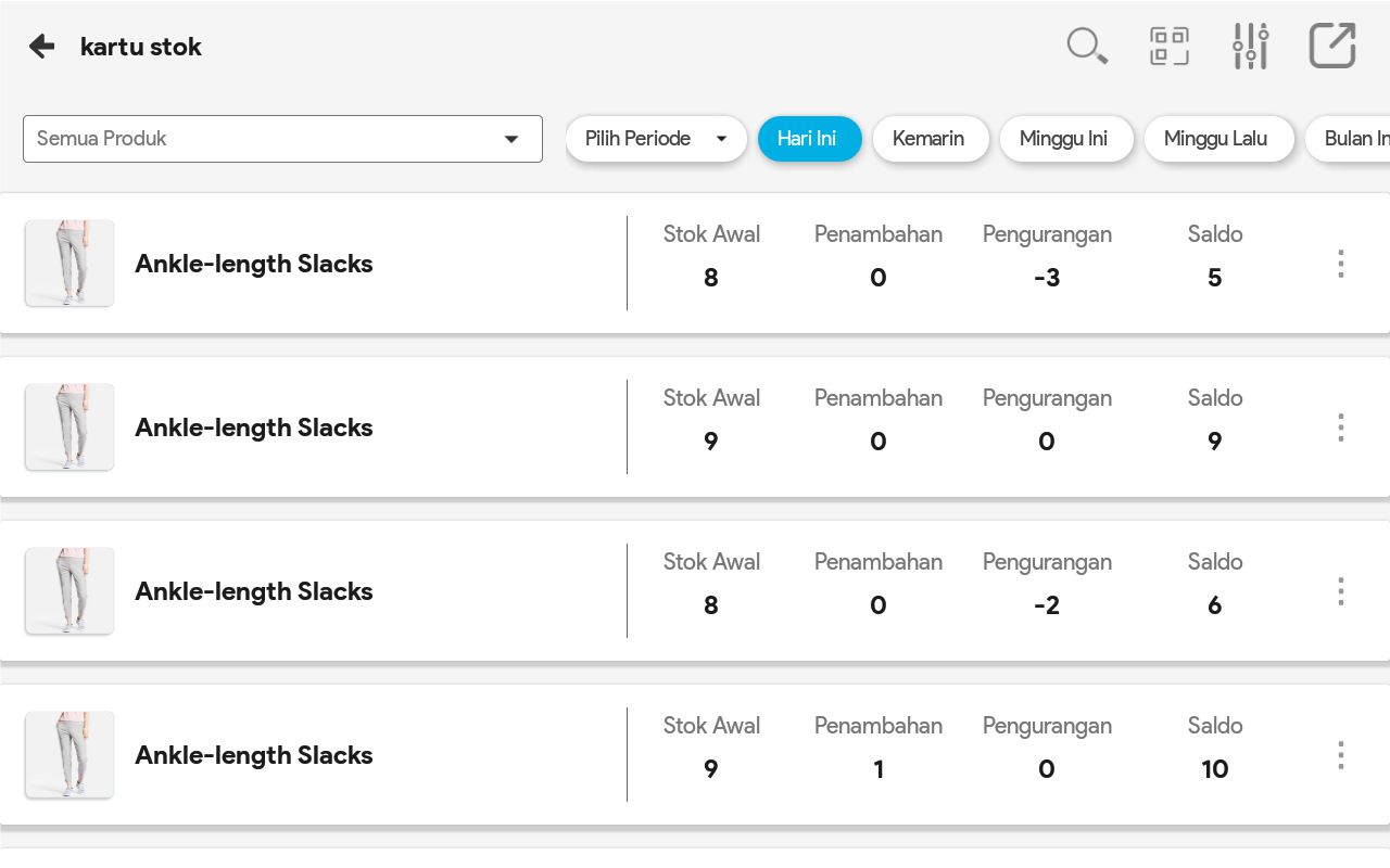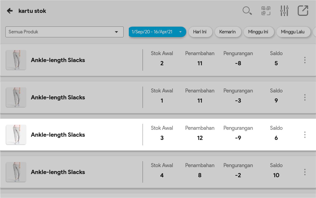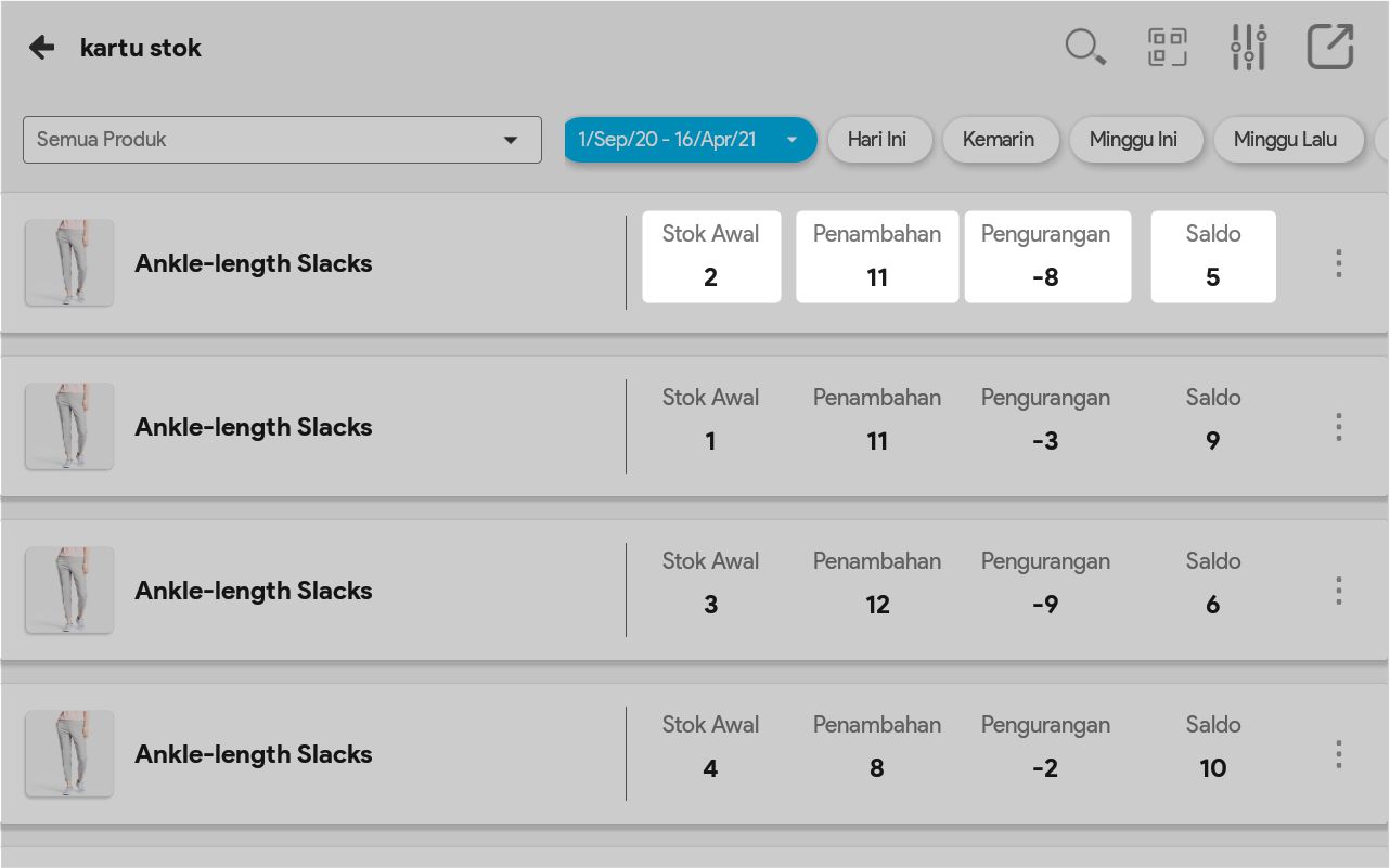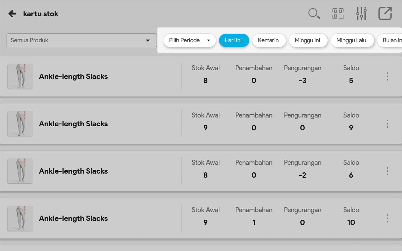 8. Pilih Tampilkan Semua Data bila ingin melihat semua pergerakan produk tersebut, dari sejak tanggal awal produk ada sampai tanggal sekarang