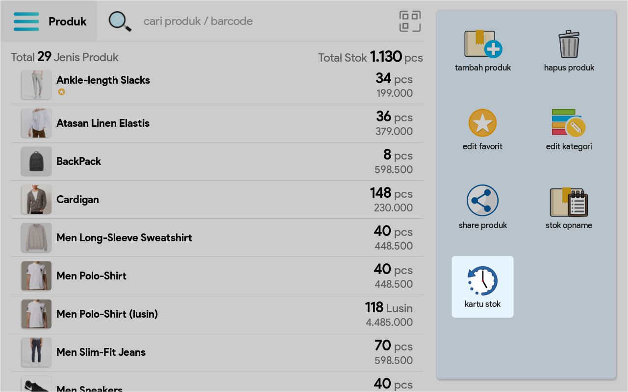2. Pilih Kartu Stok