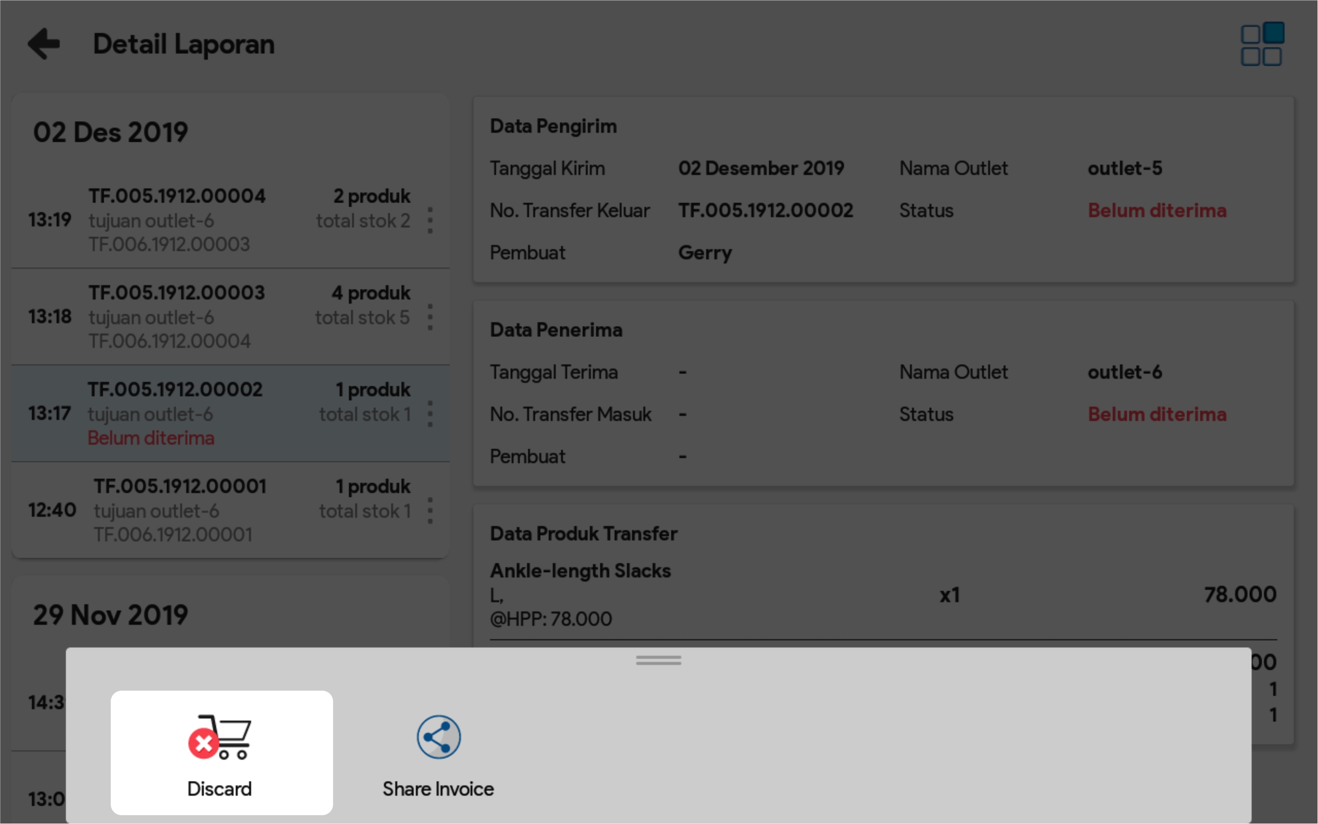 4. Pilih transfer keluar yang dimaksud