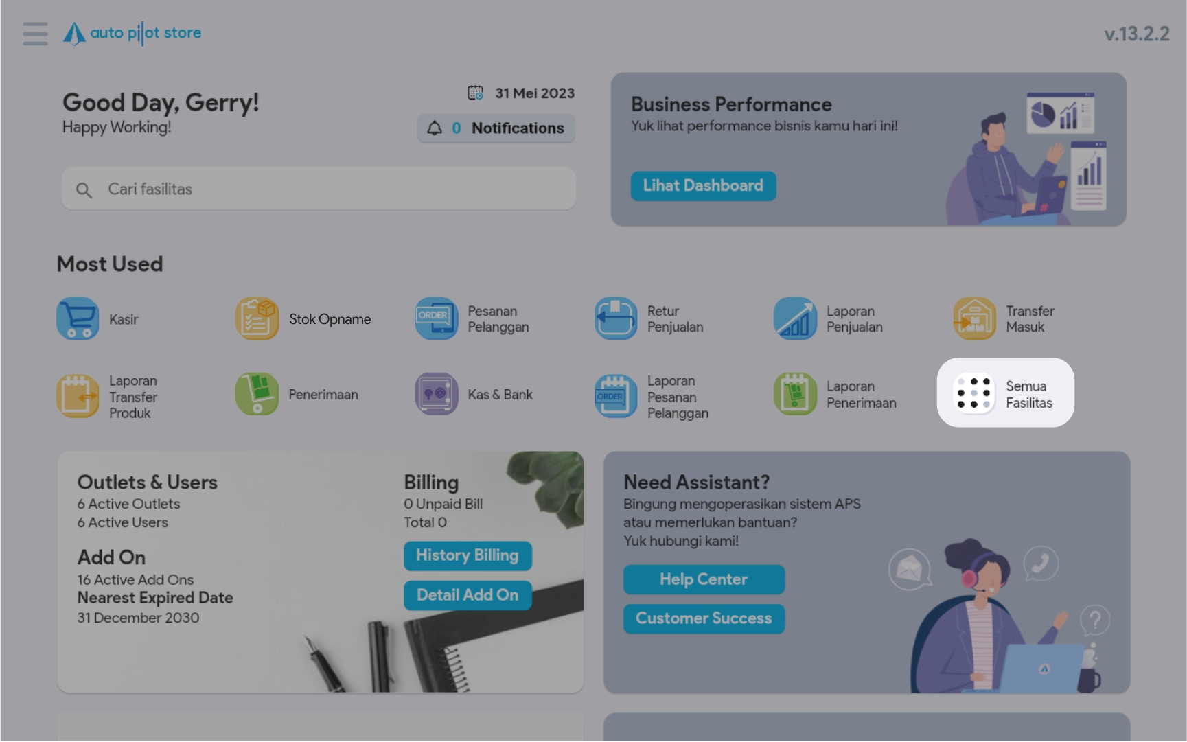 2. Atau jika Anda tidak menemukan menu Stok Opname di halaman utama, Anda dapat mengklik Semua Fasilitas, kemudian pilih menu Stok Opname