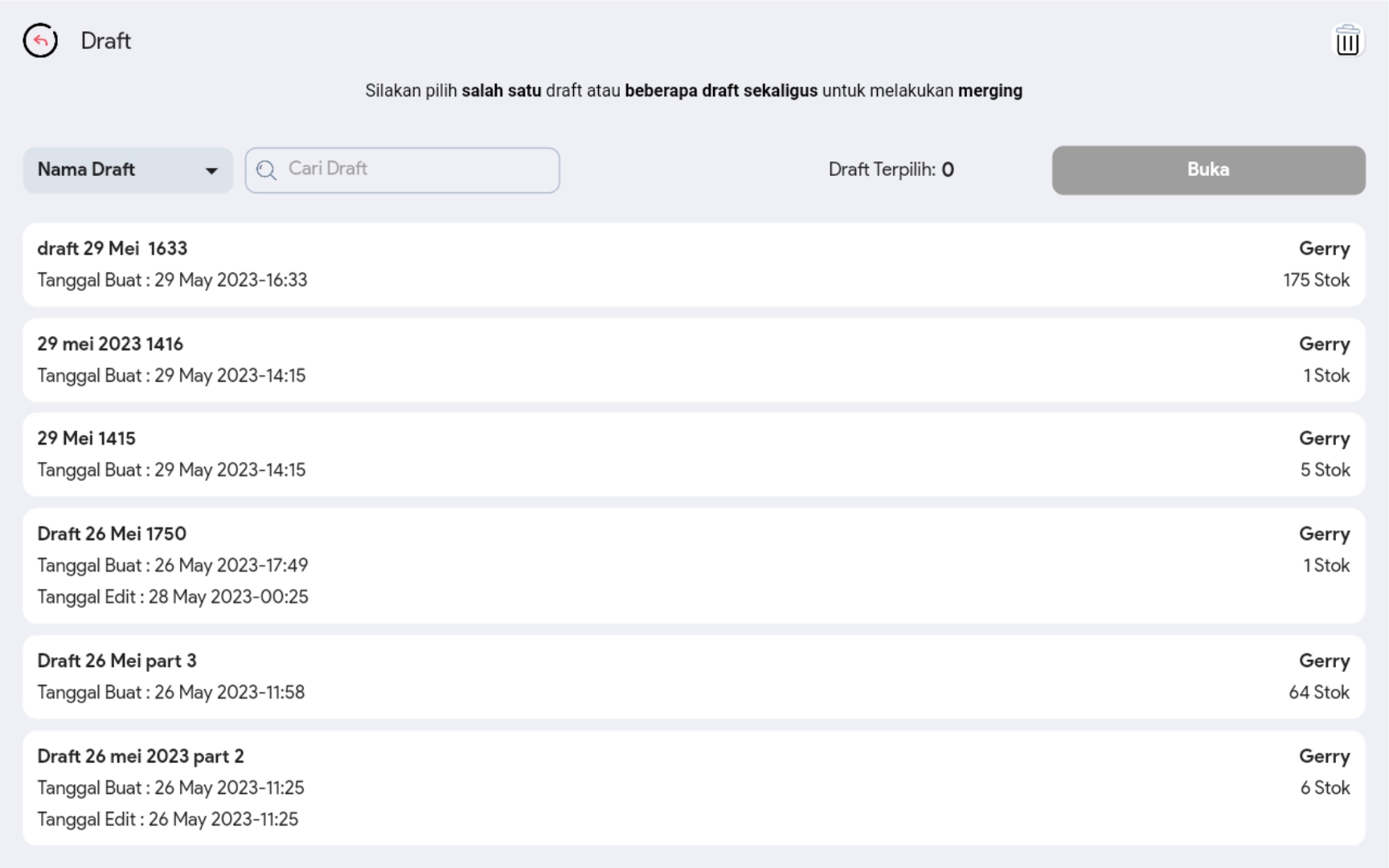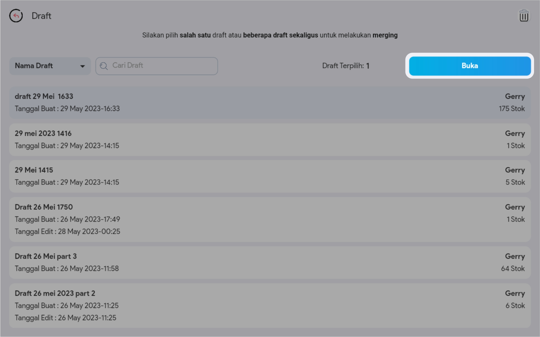 3. Klik button Draft