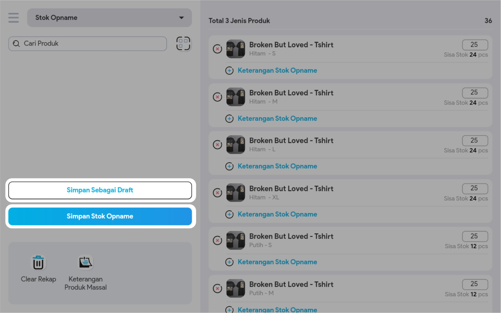 Atau klik button Simpan Stok Opname, jika Anda ingin menyelesaikan transaksi ini.