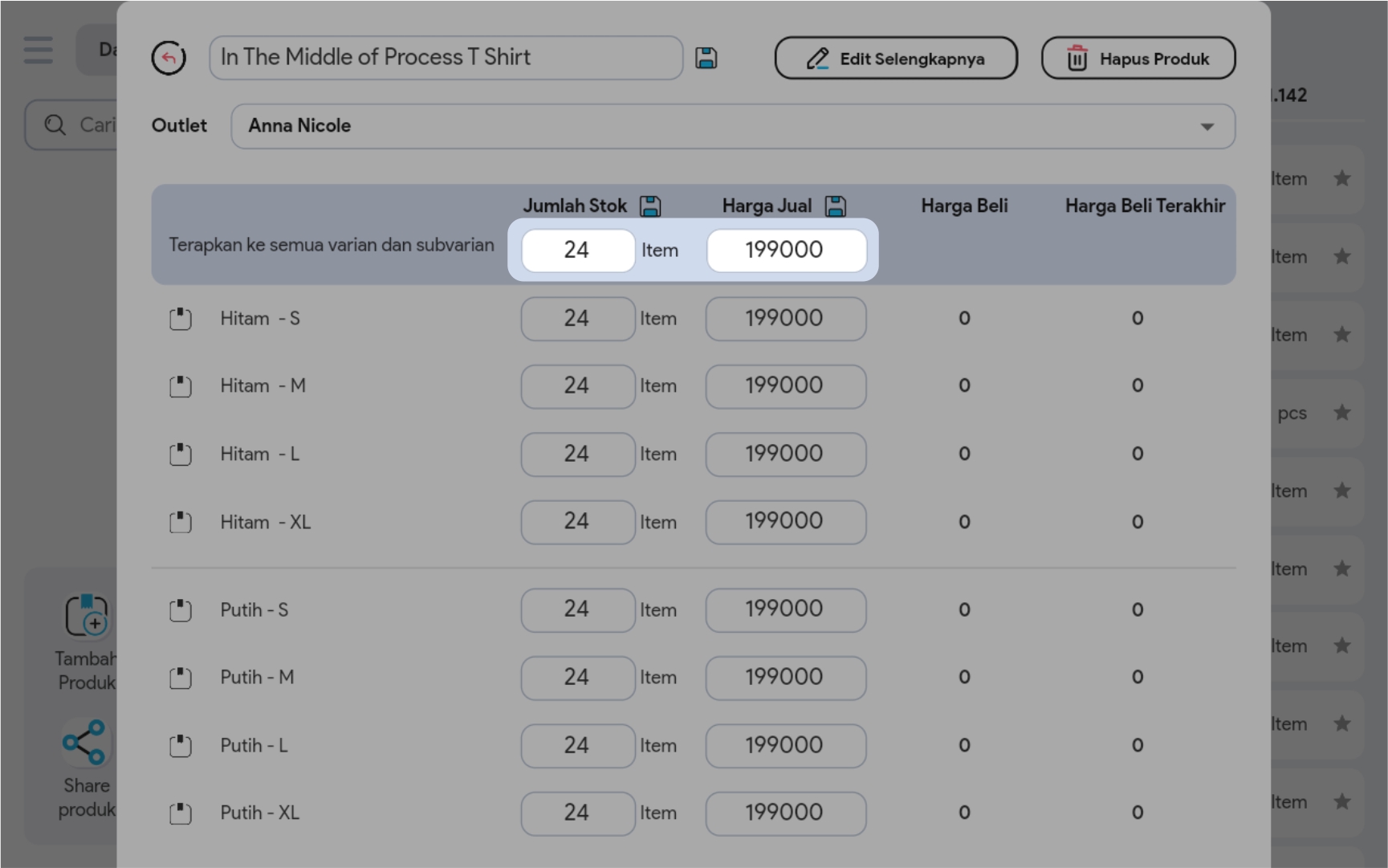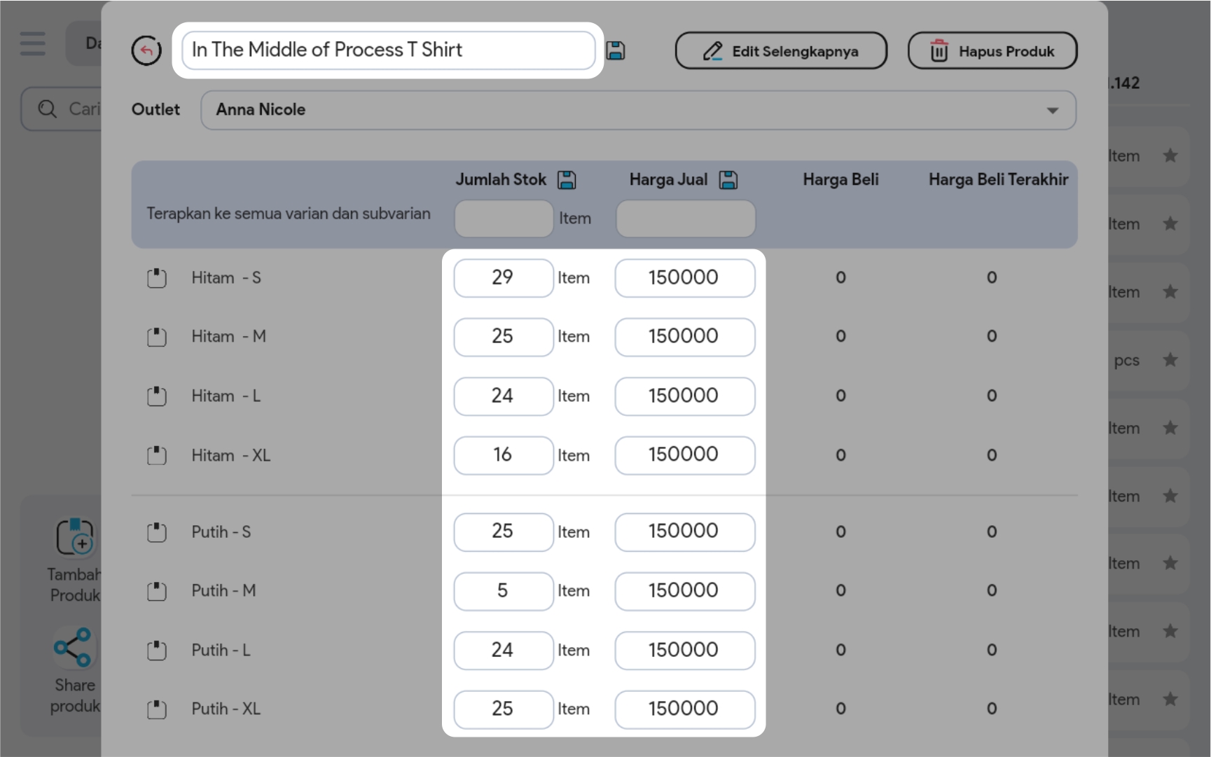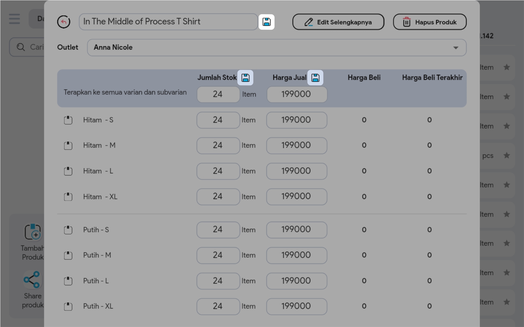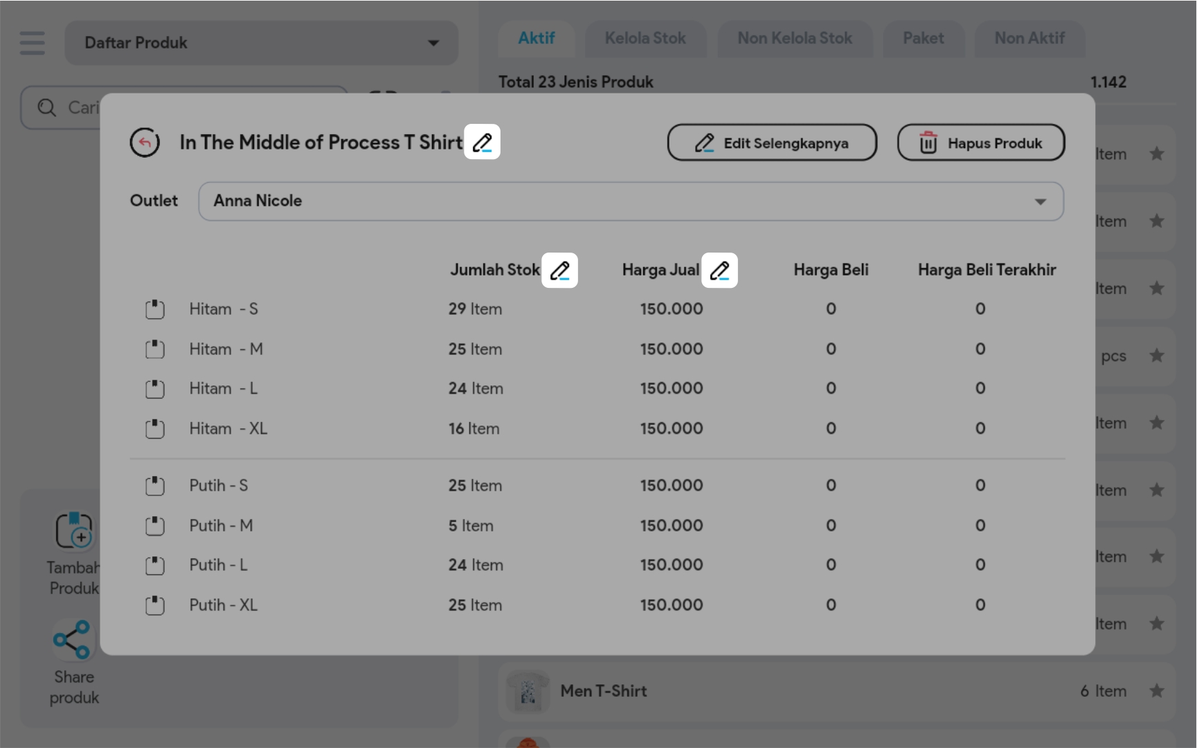 4. Edit Nama Produk / Jumlah Stok / Harga Jual dengan meng-klik Icon Edit pada bagian yang ingin Anda ubah