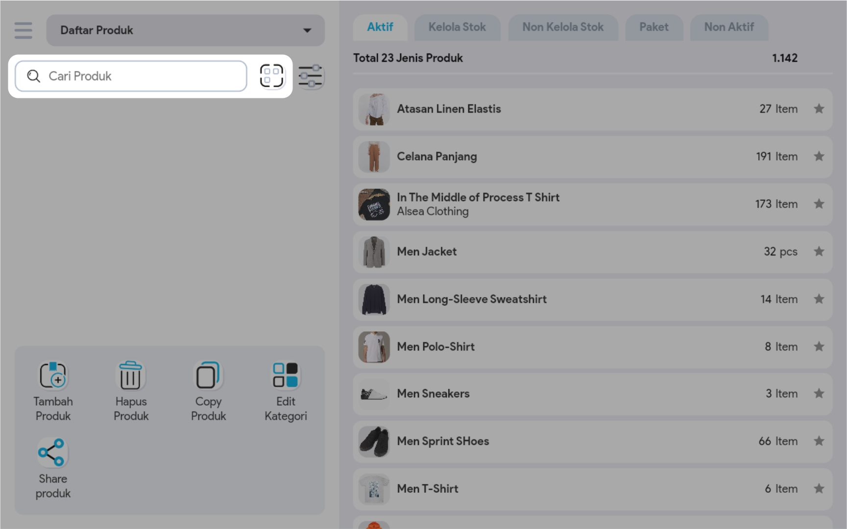2. Masukkan Nama Produk yang ingin dirubah pada kolom pencarian atau gunakan pencarian barcode
