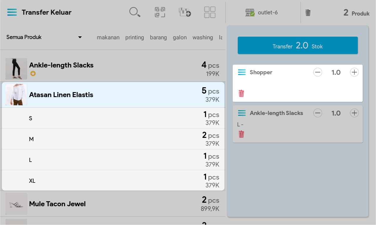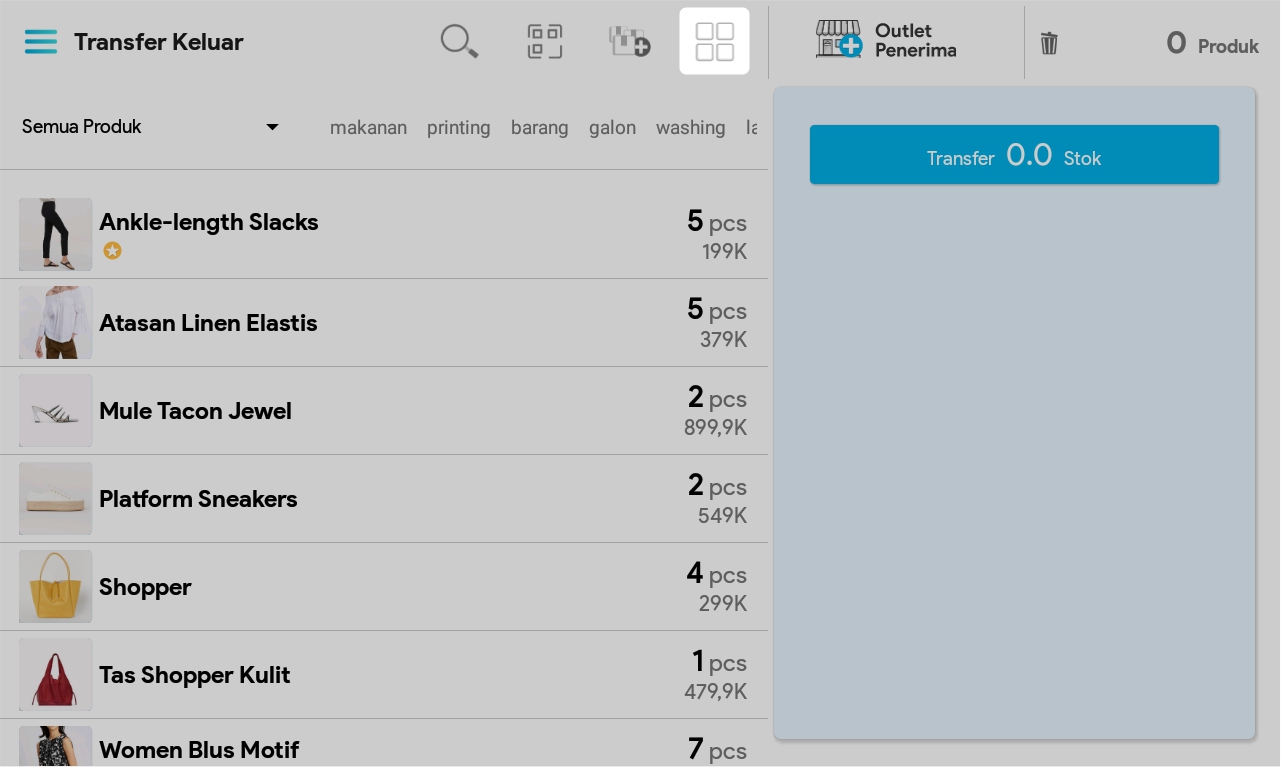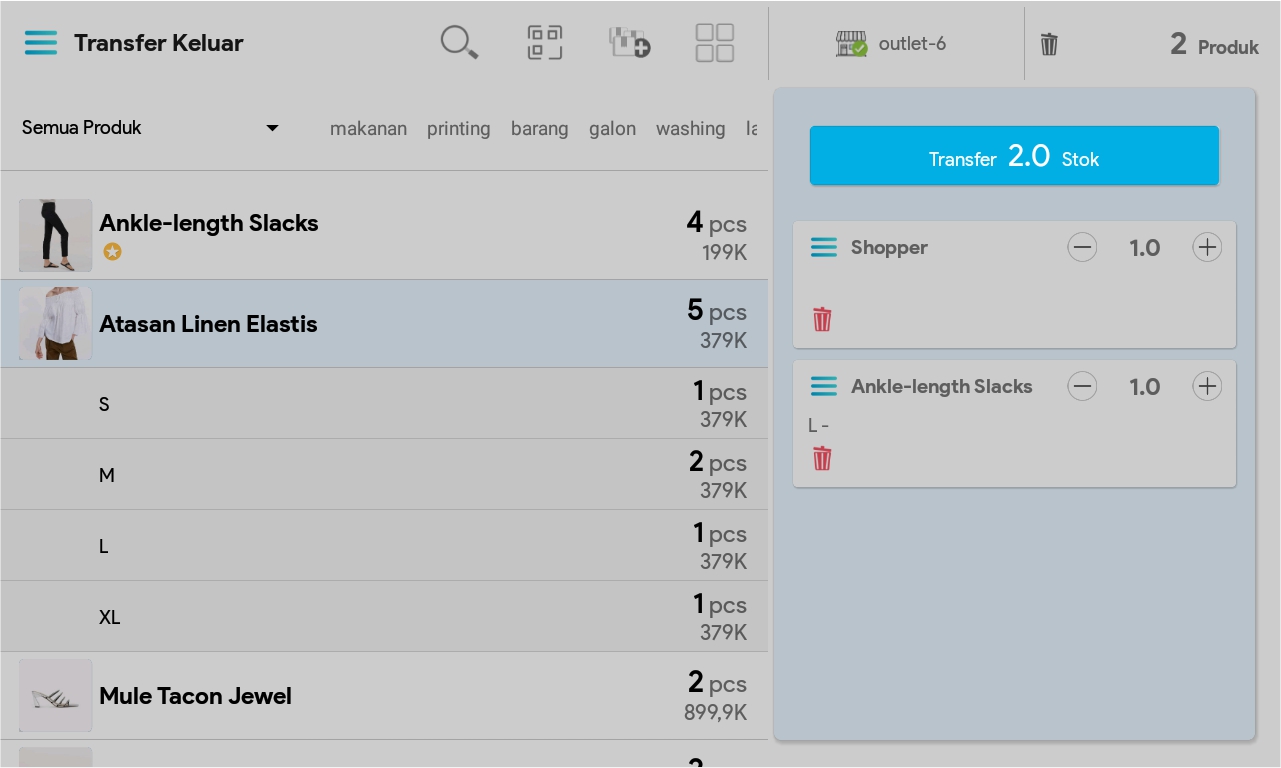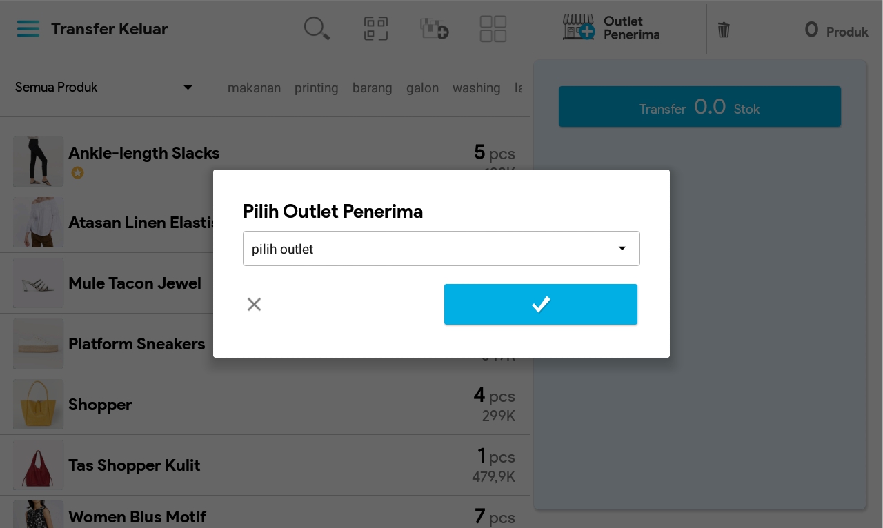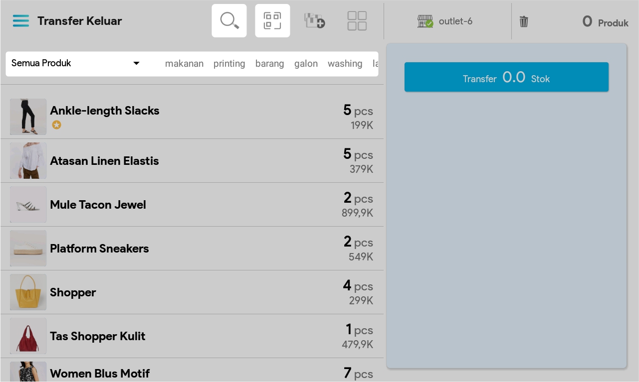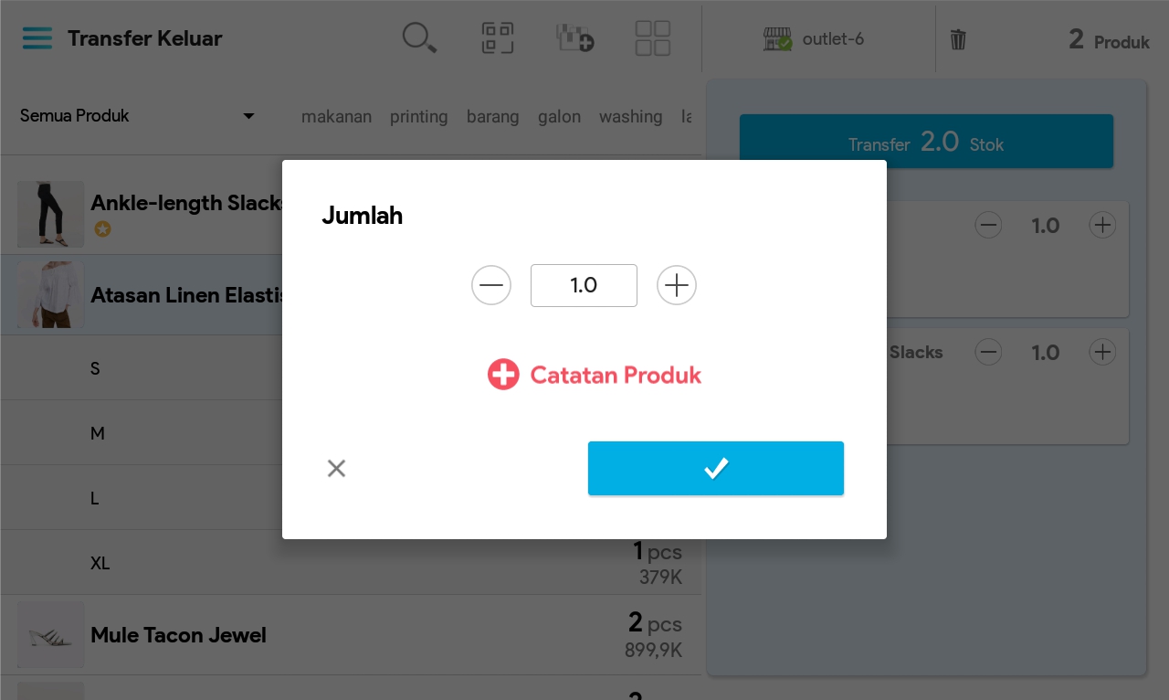 7. Masukkan jumlah produk dengan cara mengetuk produk sebanyak jumlah produk yang ingin ditransfer atau